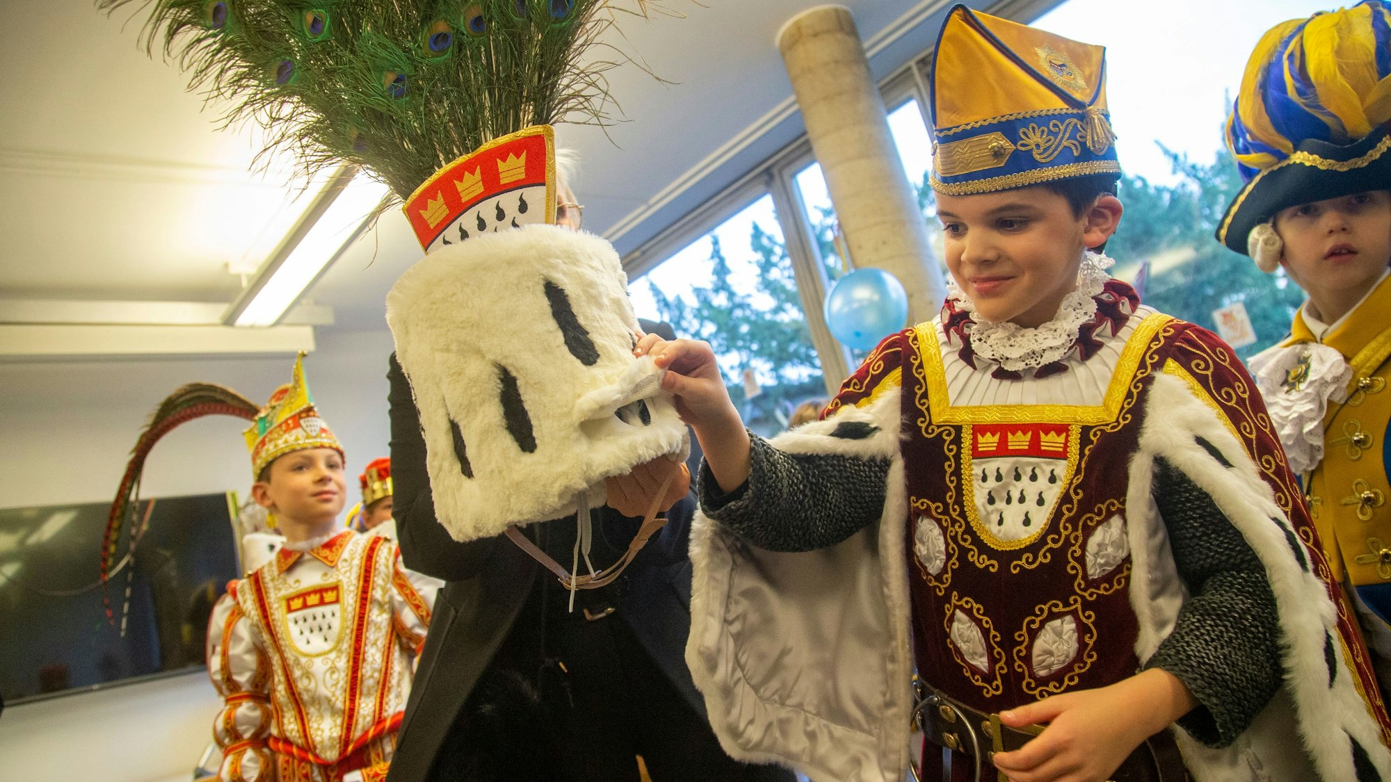 Die Auftritte machen Kinderbauer Severin am meisten Spaß. Wenn er zusammen mit Kinderprinz Julius I. und Jungfrau Benedikta in diesen Tagen die Bühnen der verschiedenen Säle betritt, strahlt er über das ganze Gesicht. Noch mehr am Mittwochnachmittag in der Kinder-HNO-Klinik der Uniklinik, in der schon viele kleine Patientinnen und Patienten im Kostüm gespannt auf das kleine Dreigestirn warten. Denn bei diesem Besuch hat Severin eine Art Heimspiel.