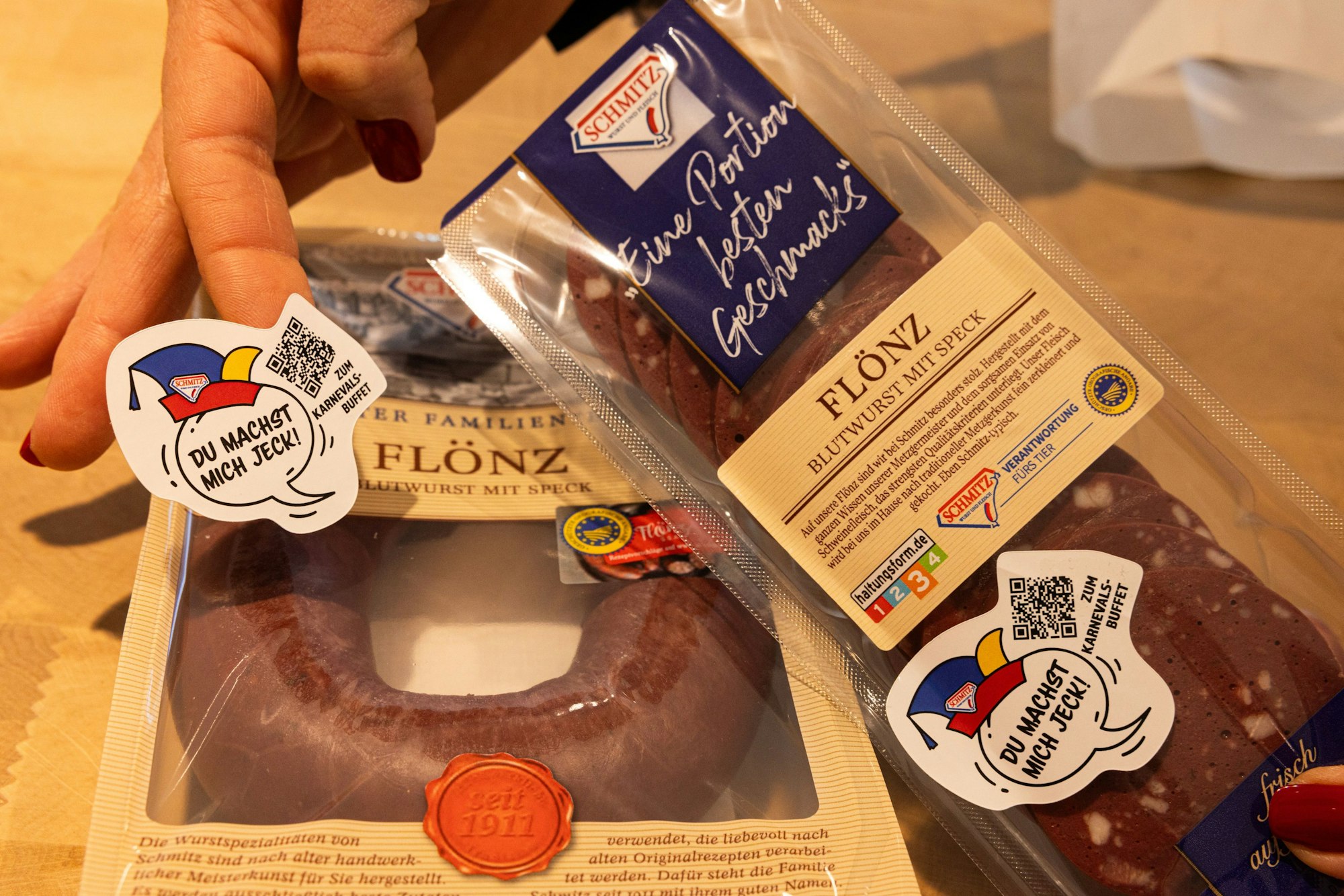 Doch für Experimente ist gerade sowieso keine Zeit. Der Karneval ist da. Jetzt braucht es Flönz-Orden, Flönz-Scheiben in handlichen Verpackungen, zum Herunterreichen vom Festwagen. Und die ganzen anderen Wurstklassiker, die an den Tollen Tagen Grundlage fürs Durchfeiern sind. Und selbst feiern, soll auch nicht zu kurz kommen. „Ich stehe der Nippesser Bürgerwehr nah“, sagt Astrid Schmitz. Den sogenannten Appelsinenfunken. Bei aller Liebe zur Wurst – hin und wieder braucht es ja auch ein paar „Vitamine“.