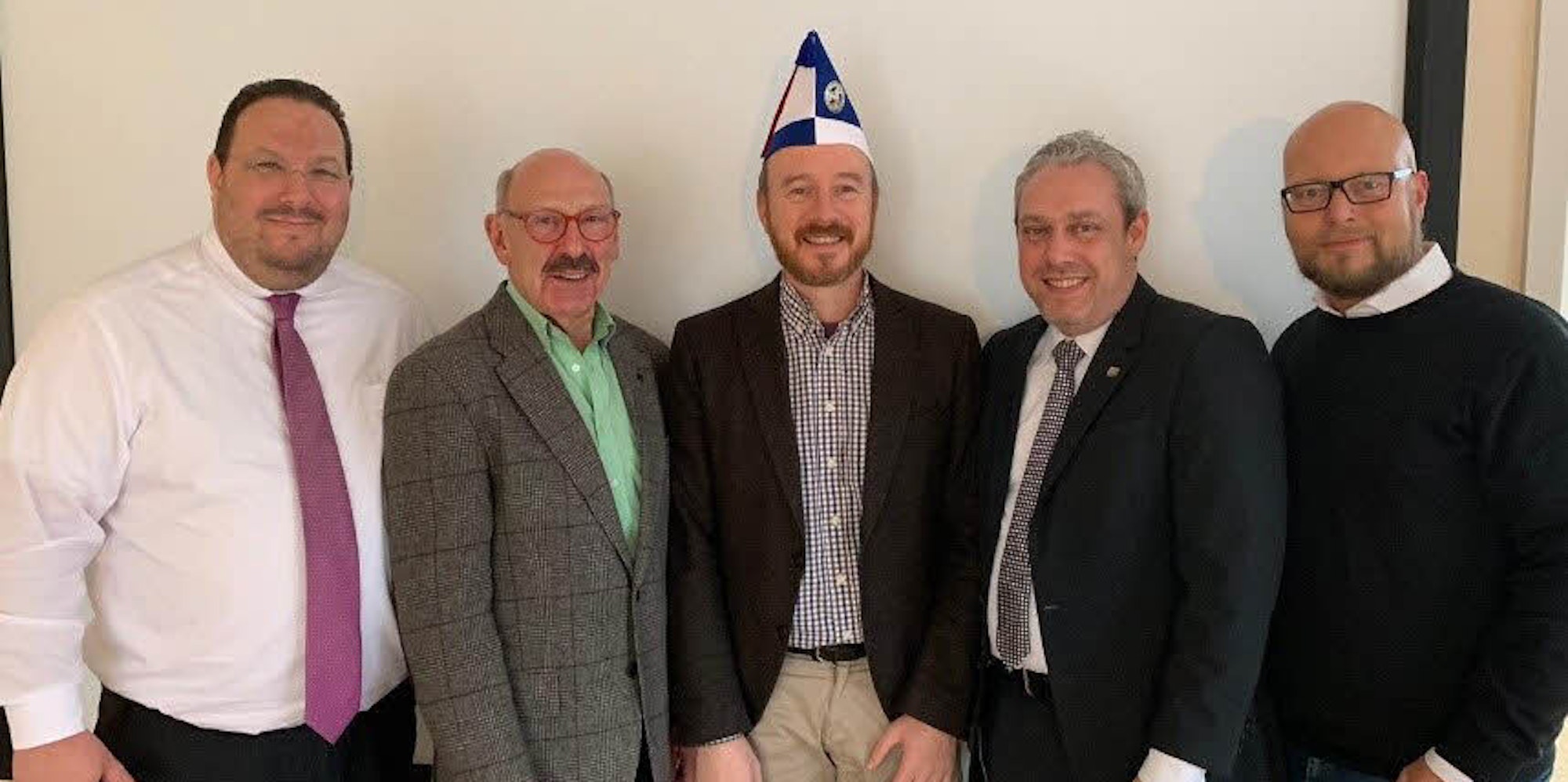 Zum Vereinsvorstand gehören Patric Levy (v.l.), Carlos Levy, Aaron Knappstein, Frank Levy und Volker Scholz-Goldenberg. Rosenmontag 1936 (o.r.) wurden Juden im Karneval brüskiert.