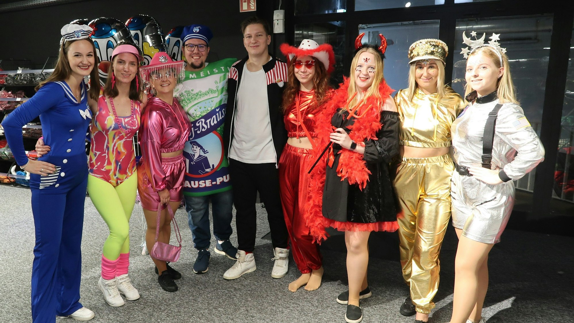 „Zu Halloween werde ich Harley Quinn“, so Christine Schmickler. Ihre Freundin Anna Willems weiß es hingegen bislang nicht. Beide sind von dem neuen Deiters begeistert. „Wir wohnen in der Nähe“, so Schmickler. Für die Mitarbeiterin Gloria Kikaya ist heute ein besonders aufregender Tag. Sie ist eine von 25 neuen Mitarbeitenden im Store. „Ich freue mich auf die Jecken“, so Kikaya.
