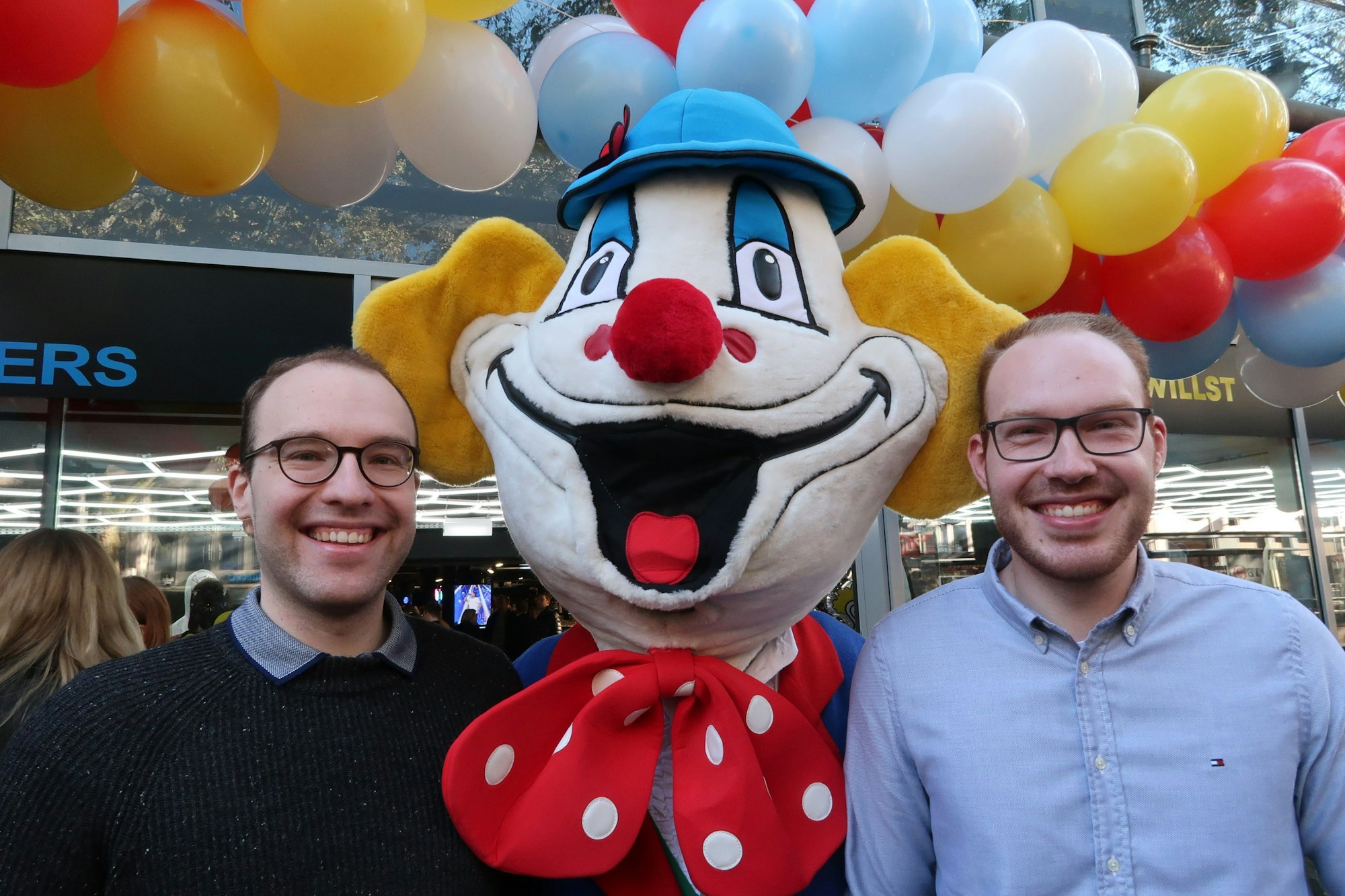 Die Rheinmatrosen haben sich gleich mal eingekleidet bei der Eröffnung des Deiters-Shop.