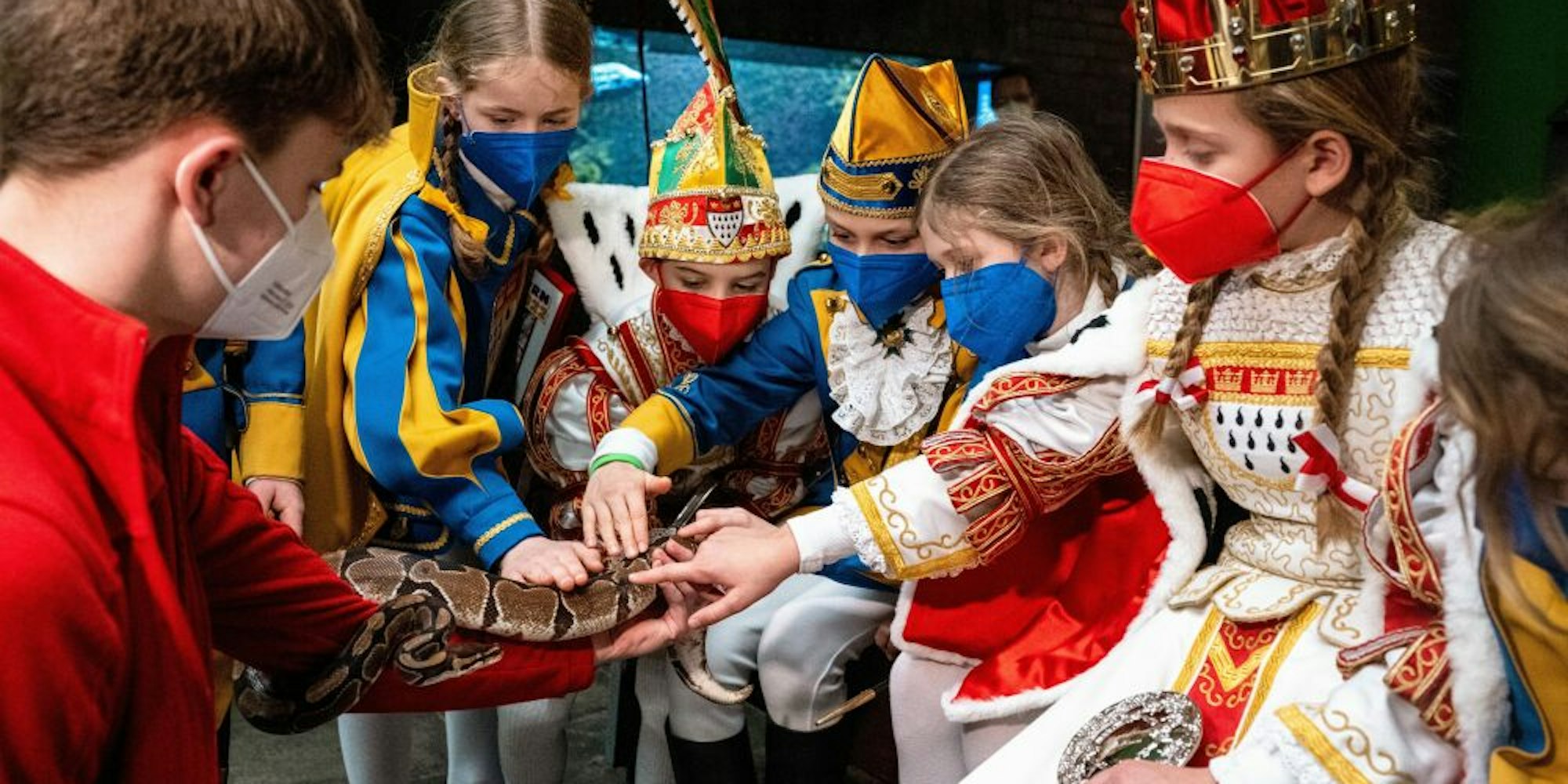 Streicheleinheiten für SchlangeKinderdreigestirn zu Besuch im Kölner Zoo