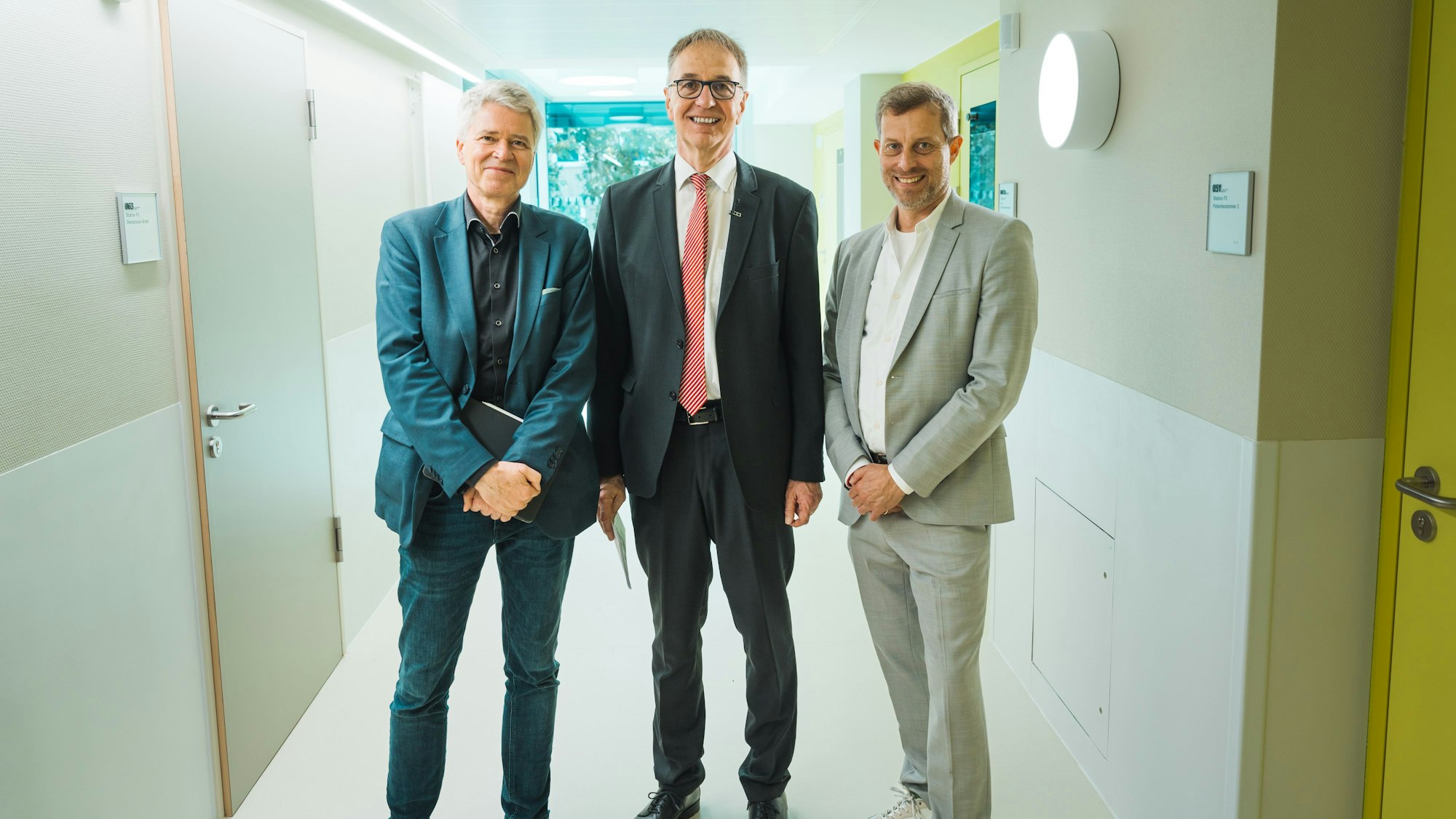 Dr. Harald Rau, Prof. Dr. Michael Weiß und Dr. Ralf Unna (v.l.) bei der Eröffnung des neuen F-Trakts im Kinderkrankenhaus Amsterdamer Straße