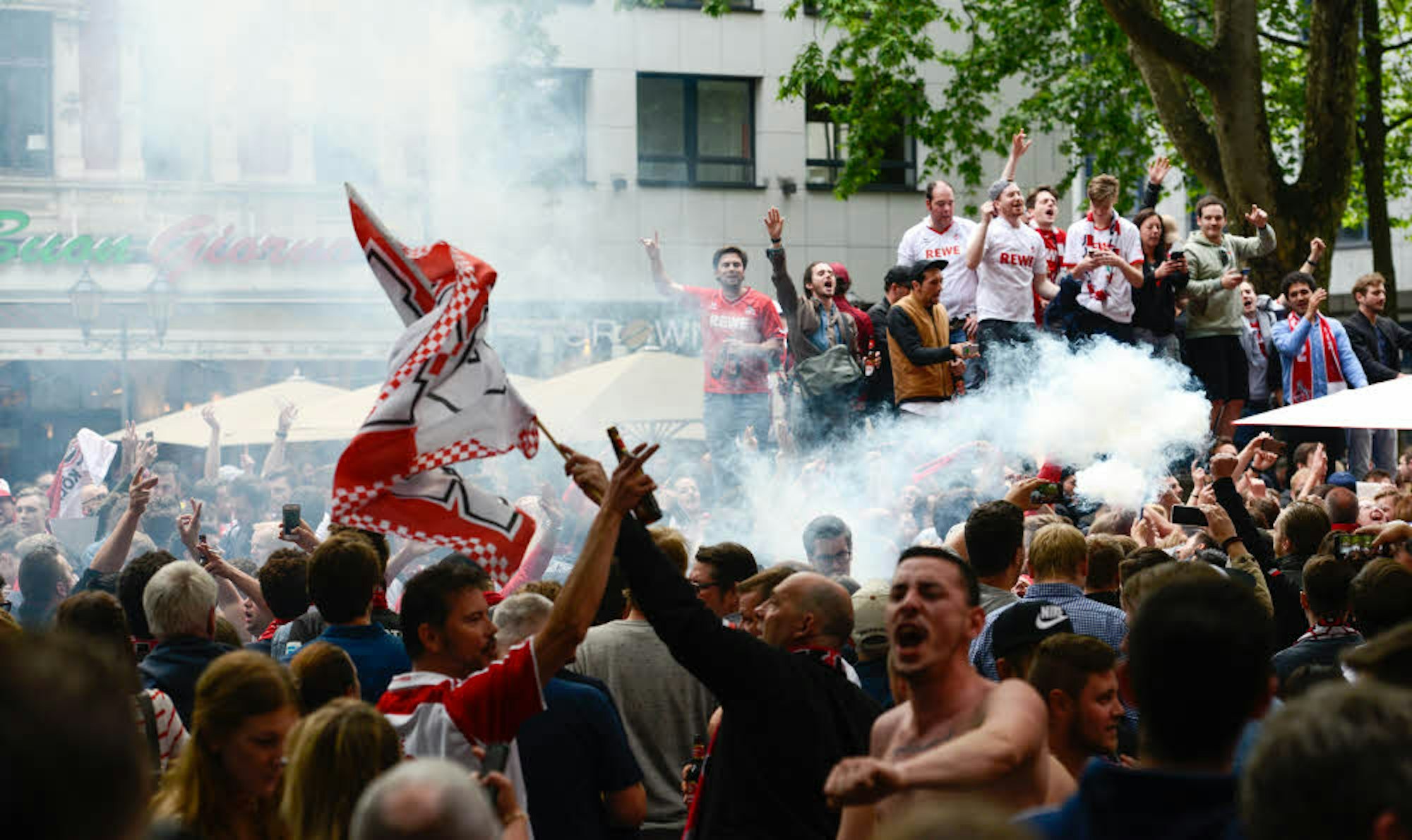 Siegesfeier auf dem Auto: Wenn der FC große Erfolge einfährt, klettern Fans auf das Werk von Wolf Vostell. Die Kunst steht dann nicht im Vordergrund.