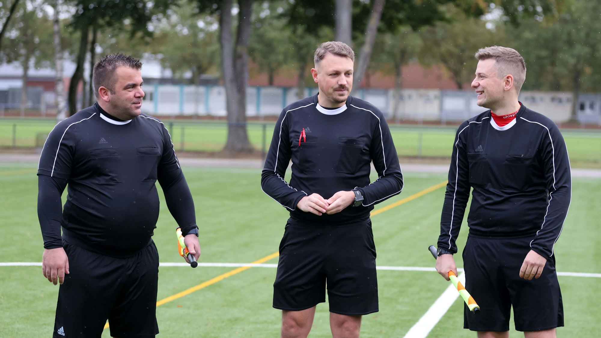 Das Schiedsrichtergespann um Axel Zimmermann (M.).