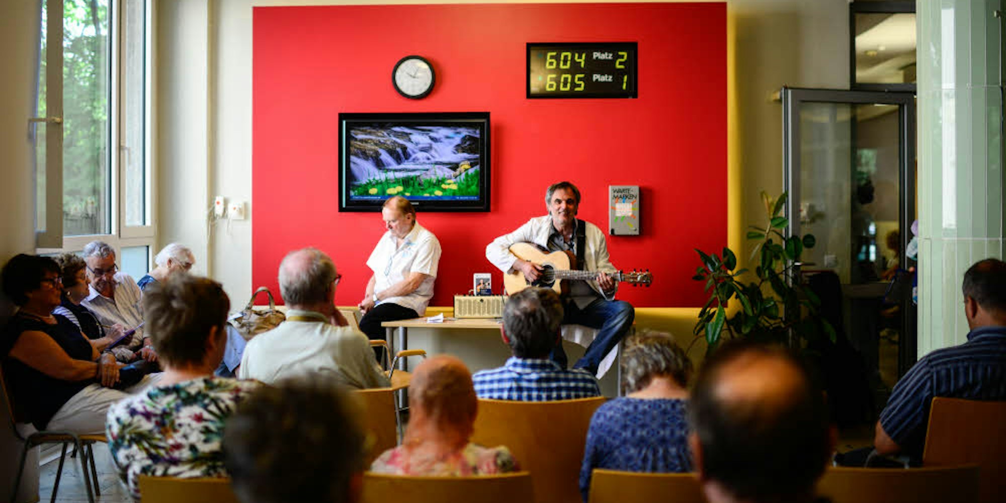 Köln – Seinen kleinen Verstärker stellt er neben den Automaten mit den Wartenummern, dann stöpselt er seine Gitarre ein. Die Stühle in der Augenklinik sind bis auf den letzten Platz besetzt. „Ich bin Bernd Gast, Musiker aus Köln und ich bin ein Service der Uniklinik.“ Er lächelt und beginnt zu spielen. Ein Patient, der hier wartet, lächelt zurück. Nach dem Auftritt sagt er:„Die Musik nimmt mir gerade die Angst vor der Operation. Grauer Star.“
