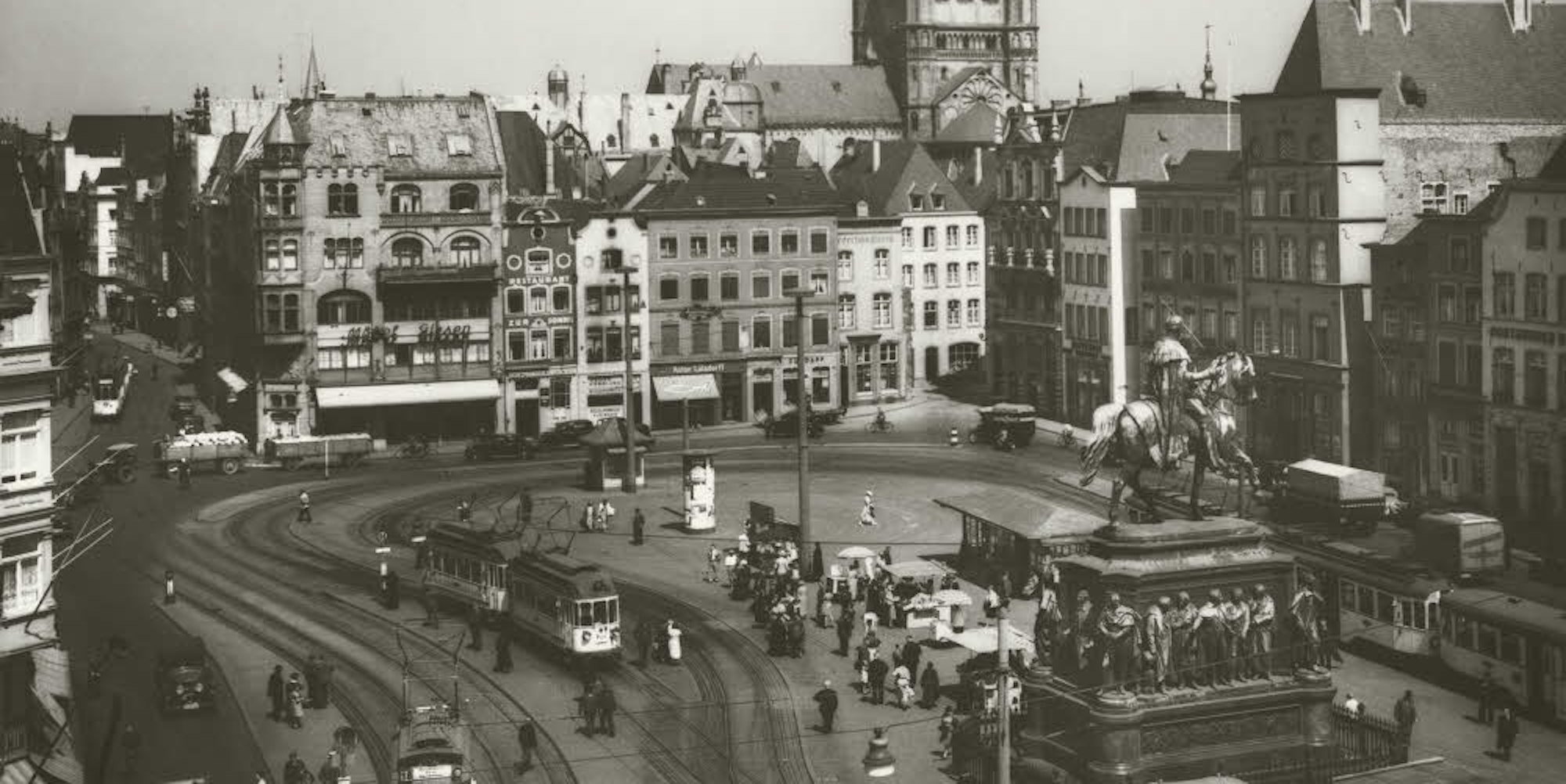 Der Rhein markierte da längst nicht mehr die Grenze der Stadt, der Brückenschlag nach Osten war für den Handel dringend notwendig. Der römischen Konstantinbrücke von 310 (die im gleichen Jahrhundert zerstört wurde) war 1822 lediglich eine Pontonlösung gefolgt, die aber den Schiffsverkehr behinderte. Ab 1913 ließ die Stadt eine Hängebrücke errichten, im zweiten Weltkrieg wurde sie zerstört. Abgezeichnet hat sich mit dem Brückenbau eine Verkehrsführung, die den Platz bis heute teilt. Die Deutzer Brücke, nach dem Krieg fertig gestellt, setzt nur fort, was schon in frühen Jahren angelegt war.