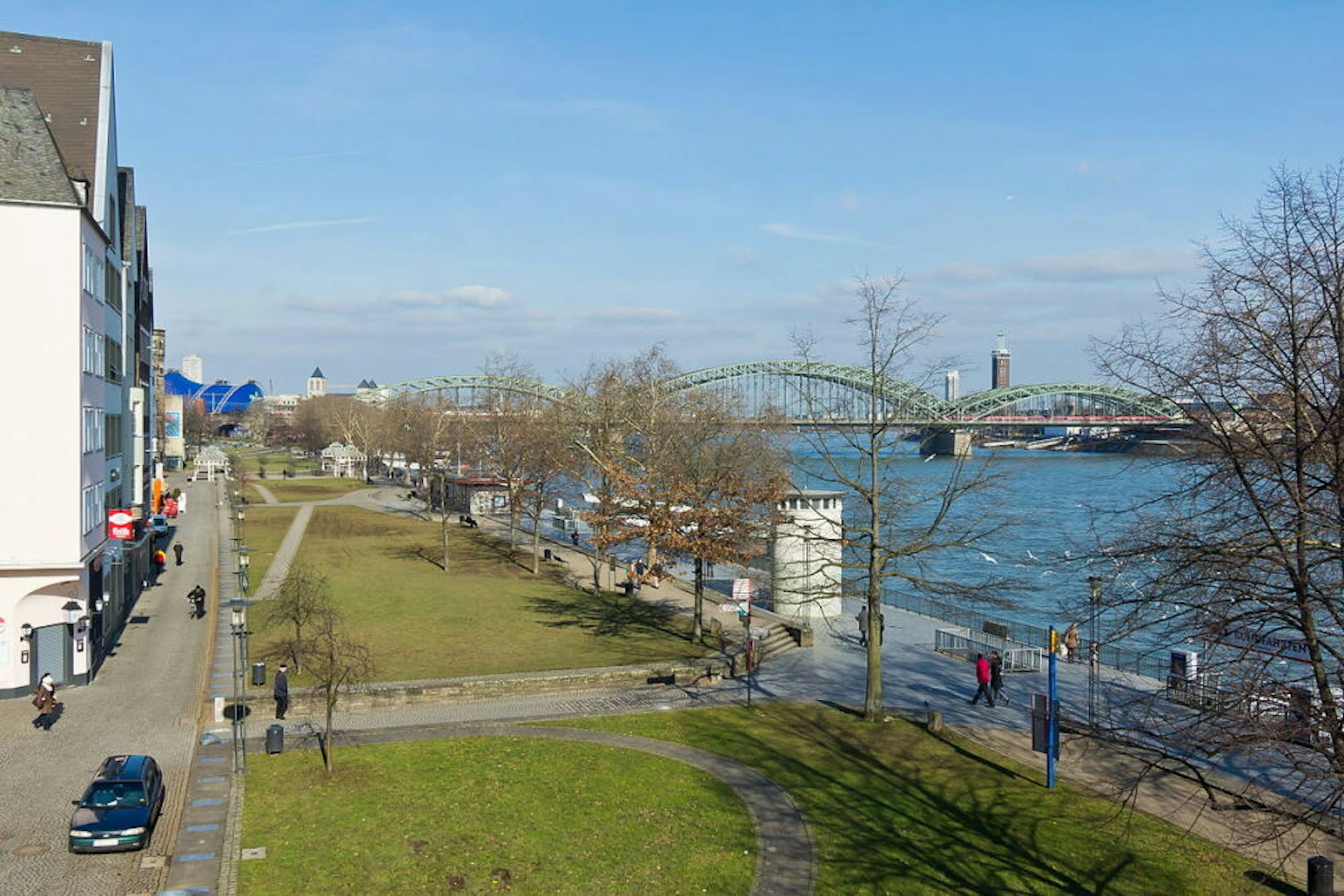 Dieser Gasthof in der Markmannsgasse entschädigte dann aber doch durch seine exquisite Lage an der Schiffsbrücke. Und auch die Stadt sieht Schopenhauer in freundlicherem Licht und berichtet über den „wahrhaft imposanten Anblick“: „Haus an Haus, Giebel an Giebel, über welche die zahlreichen Türme der vielen Kirchen emporsteigen, deren Köln in früheren Zeiten, die Kapellen mit eingerechnet, so viele in seinen Mauern eingeschlossen haben soll, als das Jahr Tage hat. In ihrer Mitte erhebt sich eine rätselhafte dunkle kolossalische Gestalt. Es scheint kein Gebäude zu sein, dafür ist es zu groß, aber auch, der zu regelmäßigen Form nach, kein isoliert dastehendes Felsenstück; es ist der Dom, dieses hohe ehrwürdige Denkmal des kühnsten Emporstrebens des menschlichen Geistes und der Unzulänglichkeit menschlicher physischer Kraft, dessen erster Anblick auf mich einen unbeschreiblich schwermütigen Eindruck machte.“