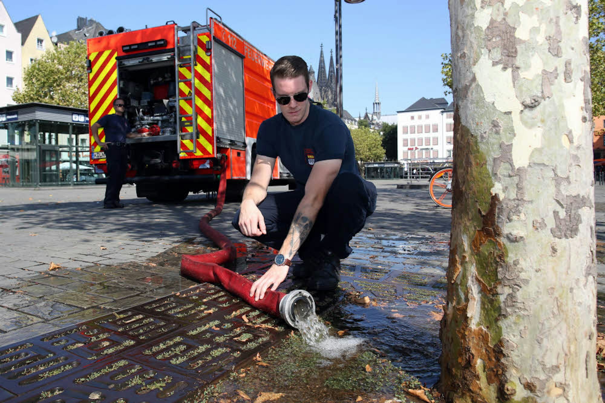In den Straßen ist schon Herbst: Um Wasser zu sparen, werfen vor allem heimische Bäume, wie Linde und Ahorn, jetzt ihre Blätter ab. Ob sie bereits abgestorben sind oder noch an den Folgen der Hitze absterben, wird man erst im Frühjahr definitiv sagen können. „Langfristig muss der Baumbestand in der Stadt solchen Situationen besser angepasst werden“, sagt Dr. Joachim Bauer, stellvertretender Leiter des Grünflächenamtes. Mit dem heißen Klima kommen besonders Platanen aus dem Mittelmeerraum gut klar, der aus Ostasien stammende Schnurbaum oder der Lederhülsenbaum. Der Austausch gehe aber natürlich nicht von heute auf morgen und nur nach und nach, sagt Bauer. In Köln gibt es rund 80 000 Straßenbäume, darunter sind rund 15 000 Linden und 14 000 Ahorn-Bäume.