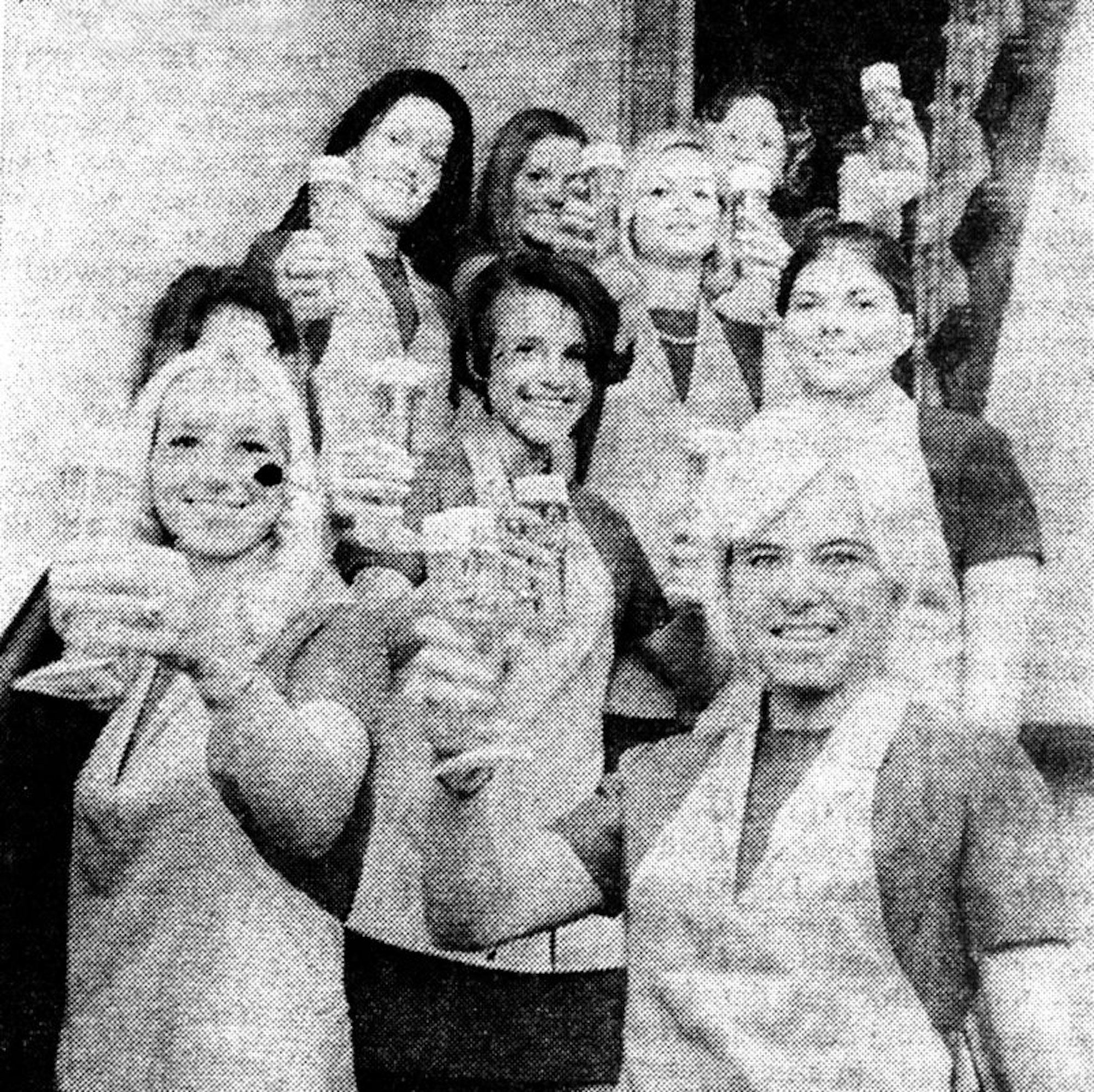 1971 Die Hostessen einer Brauerei – neun Kölner Studentinnen und drei Hausfrauen – sind in Orange gekleidet. In den Gläsern befindet sich kein Kölsch, sondern Dortmunder Pils. 1971 gibt es noch zwei Messetage für Jedermann.