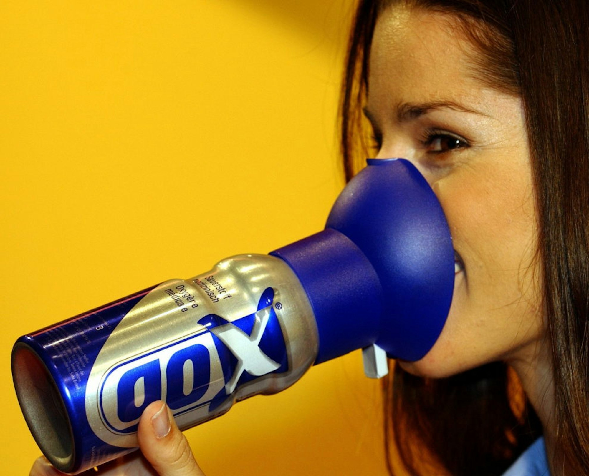 2003 99,5-prozentiger Sauerstoff aus der Druckluftdose wirkt angeblich nach fünf Atemzügen kräftigend.