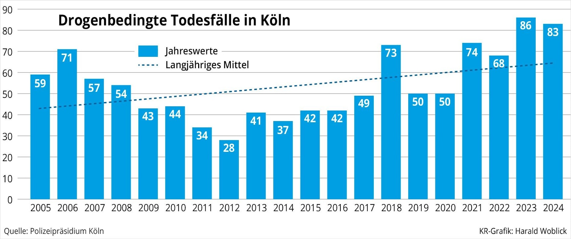 Bei der letzten Sitzung des Gesundheitsausschusses im Rathaus vor der Sommerpause zog sich ein Thema wie ein roter Faden durch die Beratungspunkte: Es wird zwar viel getan, um Drogenabhängige in der Stadt zu schützen, es gibt aber auch an vielen Stellen Herausforderungen oder sogar herbe Rückschläge. Die Zahl der Drogentoten steigt seit Jahren kontinuierlich an. Allein in den vergangenen fünf Jahren sind die polizeilich registrierten „drogenbedingten Todesfälle“ um zwei Drittel auf nun 83 Personen gestiegen.