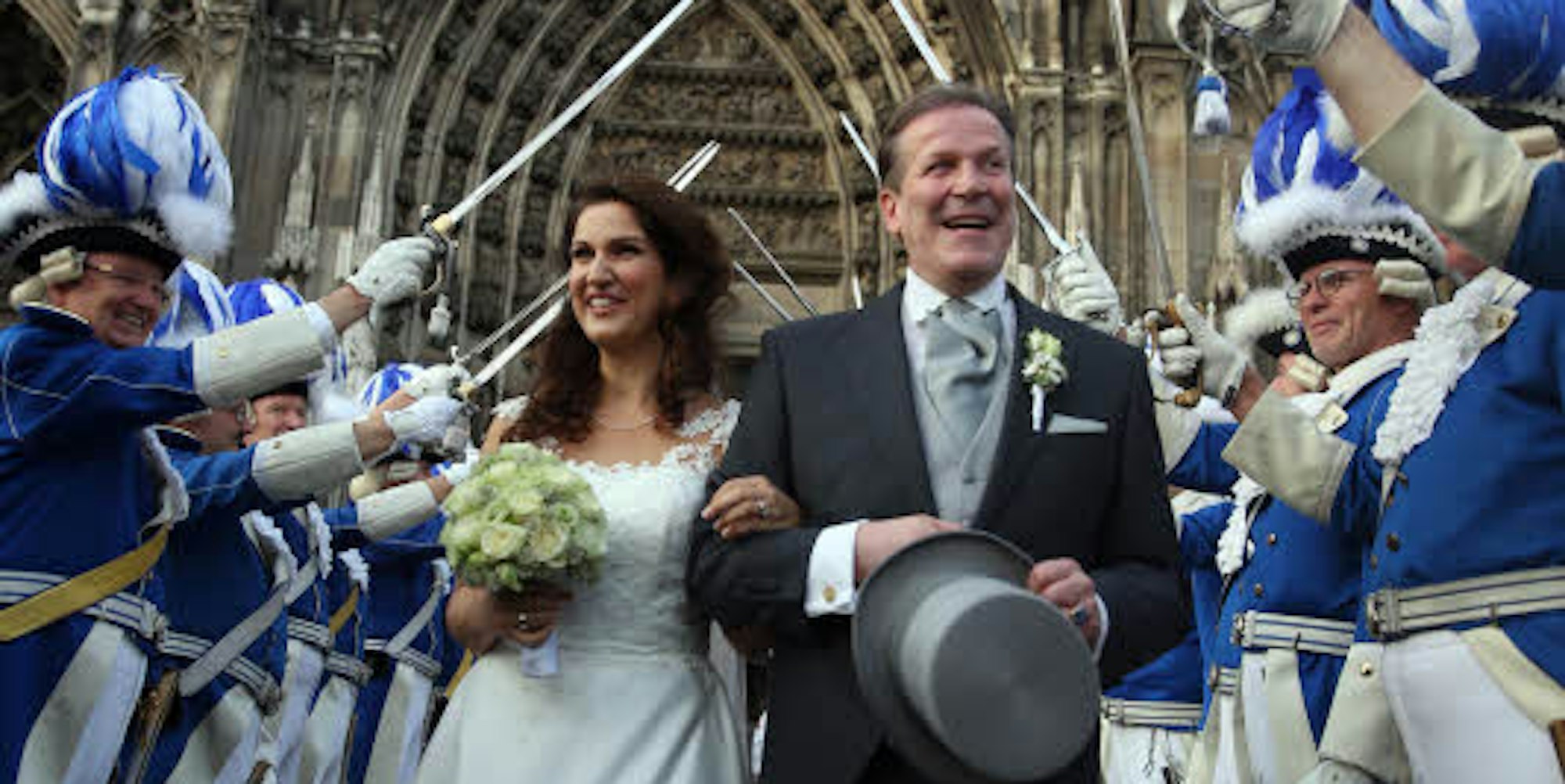 Köln – Wenn Prominenz heiratet, gibt es traditionell viel Auflauf. Zwar nahm die Vermählung von Festkomitee-Präsident Christoph Kuckelkorn (53) mit seiner Katia Gonçalves-Wittke (38) im Kölner Dom nicht annähernd solche Ausmaße an wie eine royale Hochzeit im Vereinigten Königreich – aber auch auf dem Roncalliplatz hatte sich am Samstagnachmittag eine große Menschenschar versammelt, um das Brautpaar zu begrüßen und ihm zu gratulieren. Vor allem viele Touristen blieben ob des bunten Auflaufs stehen, zückten ihre Handys, um Fotos zu machen und fragten verwundert nach, was denn hier los sei.