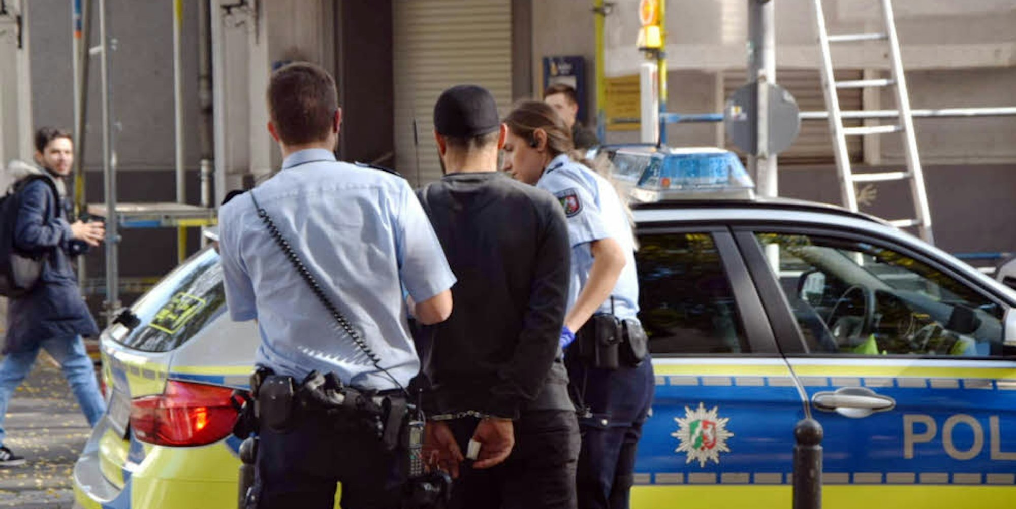 Festnahme: Der Tatverdächtige wurde gefesselt im Streifenwagen zur Wache gefahren.