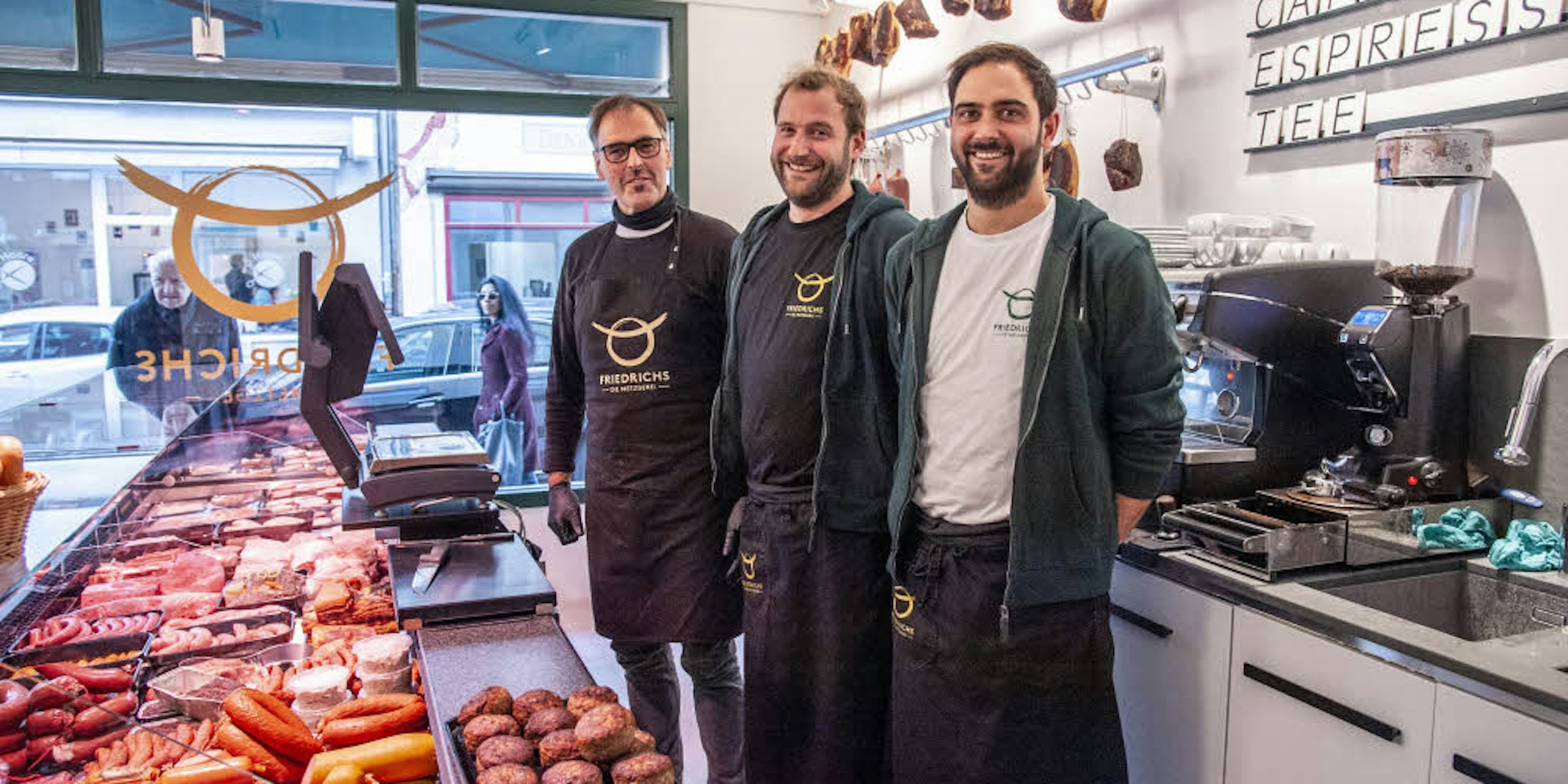 Köln-Sülz – „Eine gewisse Portion Mut gehört schon dazu“, sagt Sebastian Friedrichs (37). „Aber wir probieren es“, ergänzt sein Bruder David (35). Der Blick in den Verkaufsraum ist bereits erfolgversprechend: Dort stehen die Kunden Schlange. Gemeinsam mit ihrem Vater Christoph Friedrichs (59) haben sie eine Metzgerei an der Sülzburgstraße eröffnet. Gegen den Trend in der Branche (siehe Infokasten). Aber offensichtlich ganz im Trend ihres Veedels: „Hier leben viele junge Familien, die sich bewusst ernähren möchten“, sagt Sebastian Friedrichs.