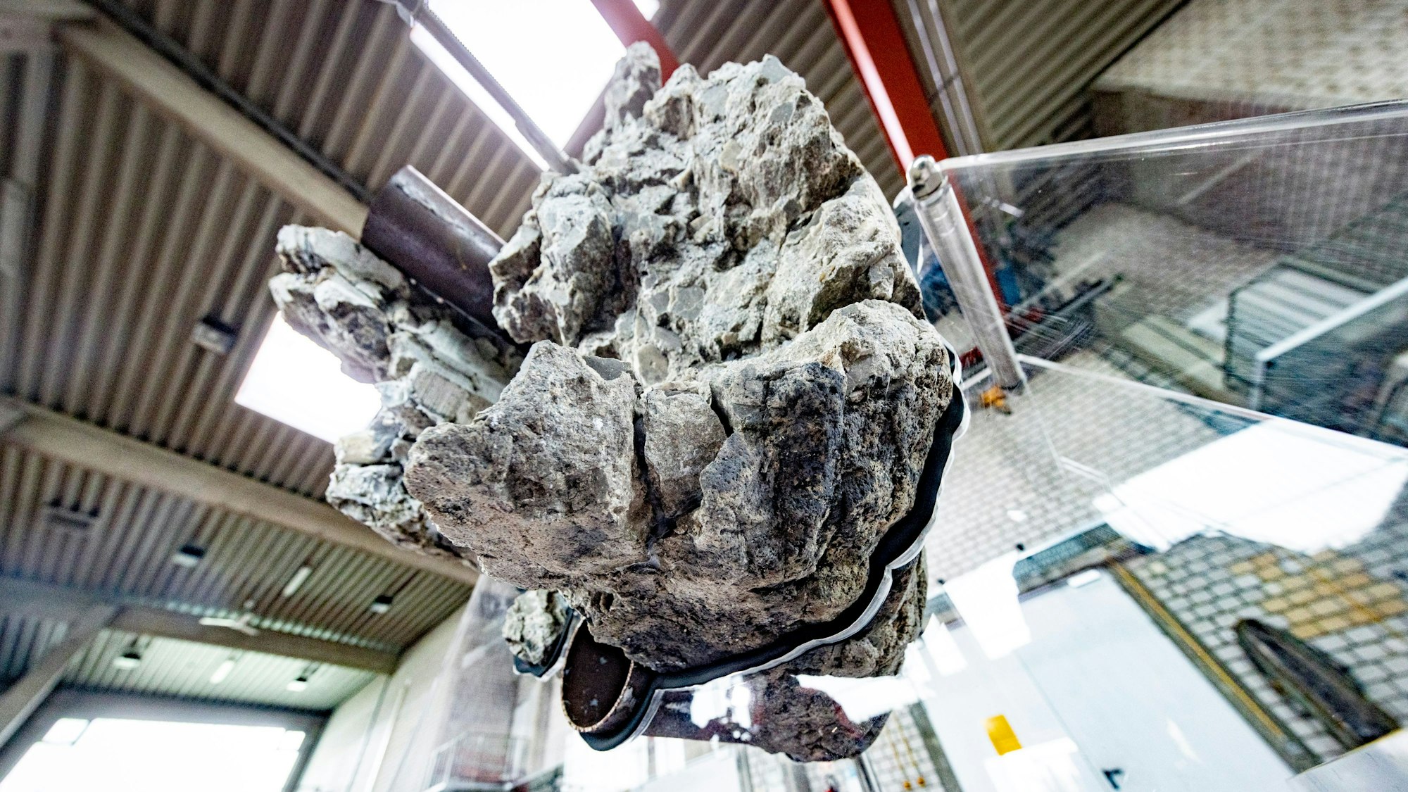 Nur auf Nachdruck auch der Rundschau wurde er nun doch zum Fotografieren freigegeben. Im Ganzen ließ sich der Stein in Länge von 1,20 Metern nicht nach oben schaffen. Ein Teil war zu fest im Beton der Schließwand eingegossen. Was gelöst werden konnte, war fortan Gegenstand gutachterlicher Untersuchungen. Um zu belegen, was das Landgericht Köln in erster Instanz als erwiesen ansah: Dass das Verbleiben des Steins im Erdreich Ursache für den Archiveinsturz ist. So schloss die Wand nicht in über 20 Meter Tiefe nicht dich ab. Anstehendes Grundwasser konnte den Bereich langsam aber stetig unterspülen. Bis schließlich ein Freiraum entstand, so groß, dass es dem Stadtarchiv den Boden unter den Füßen wegzog.