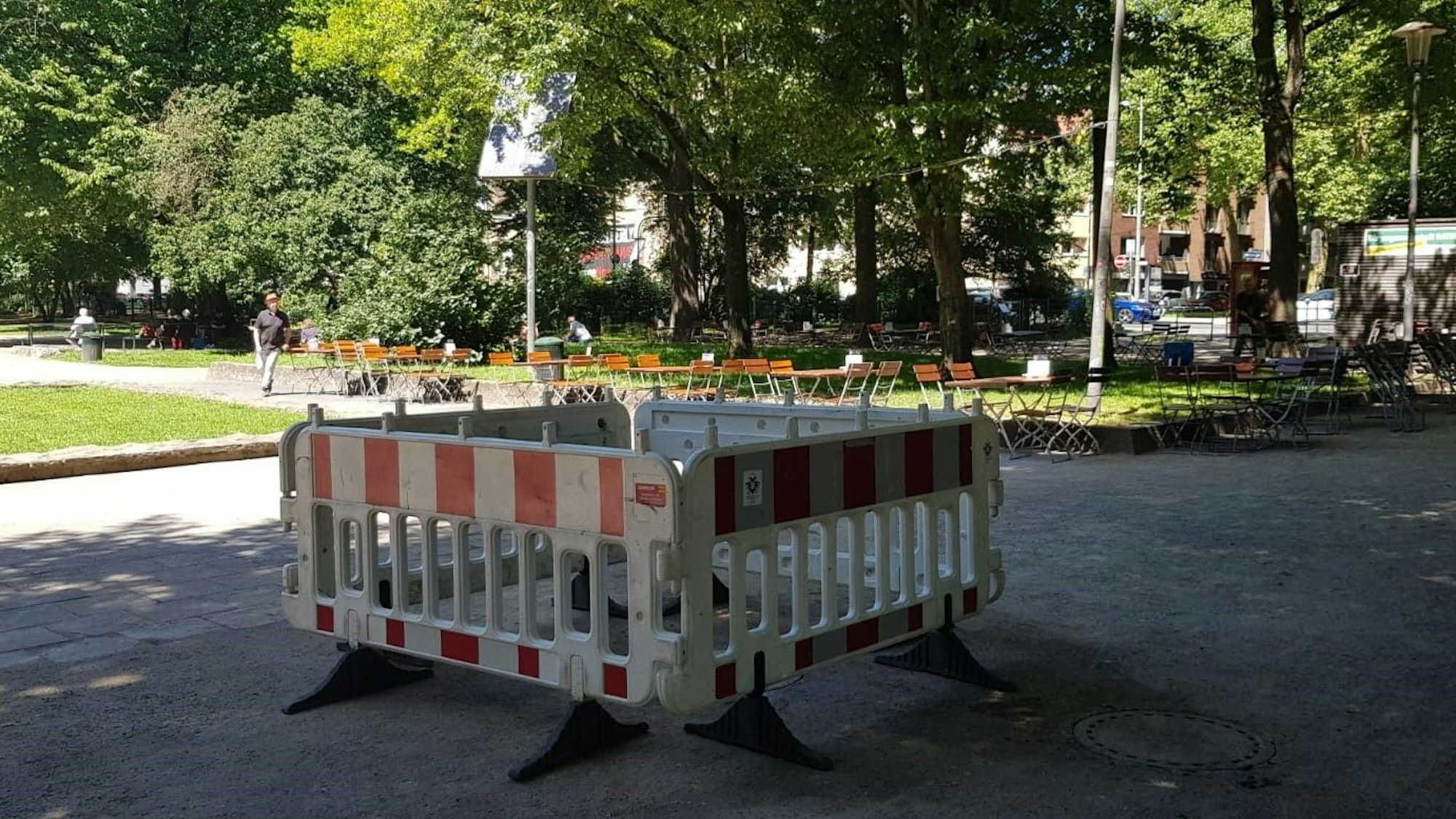 Das stank zum Himmel: Anwohner und Besucher des Rathenauplatzes im Kwartier Latäng hatten an den heißen Tagen der vergangenen Woche mit ziemlich unliebsamen Gerüchen zu tun. Direkt neben dem Spielplatz und dem dortigen Biergarten war Abwasser aus einem verstopften Kanalschacht gesprudelt — darunter auch Fäkalien und massenweise Toilettenpapier. Dieser Unrat blieb allerdings auch mit etwas Sand überdeckt immer noch so präsent, dass der Geruch sogar bis in die anliegenden Wohnungen zog.