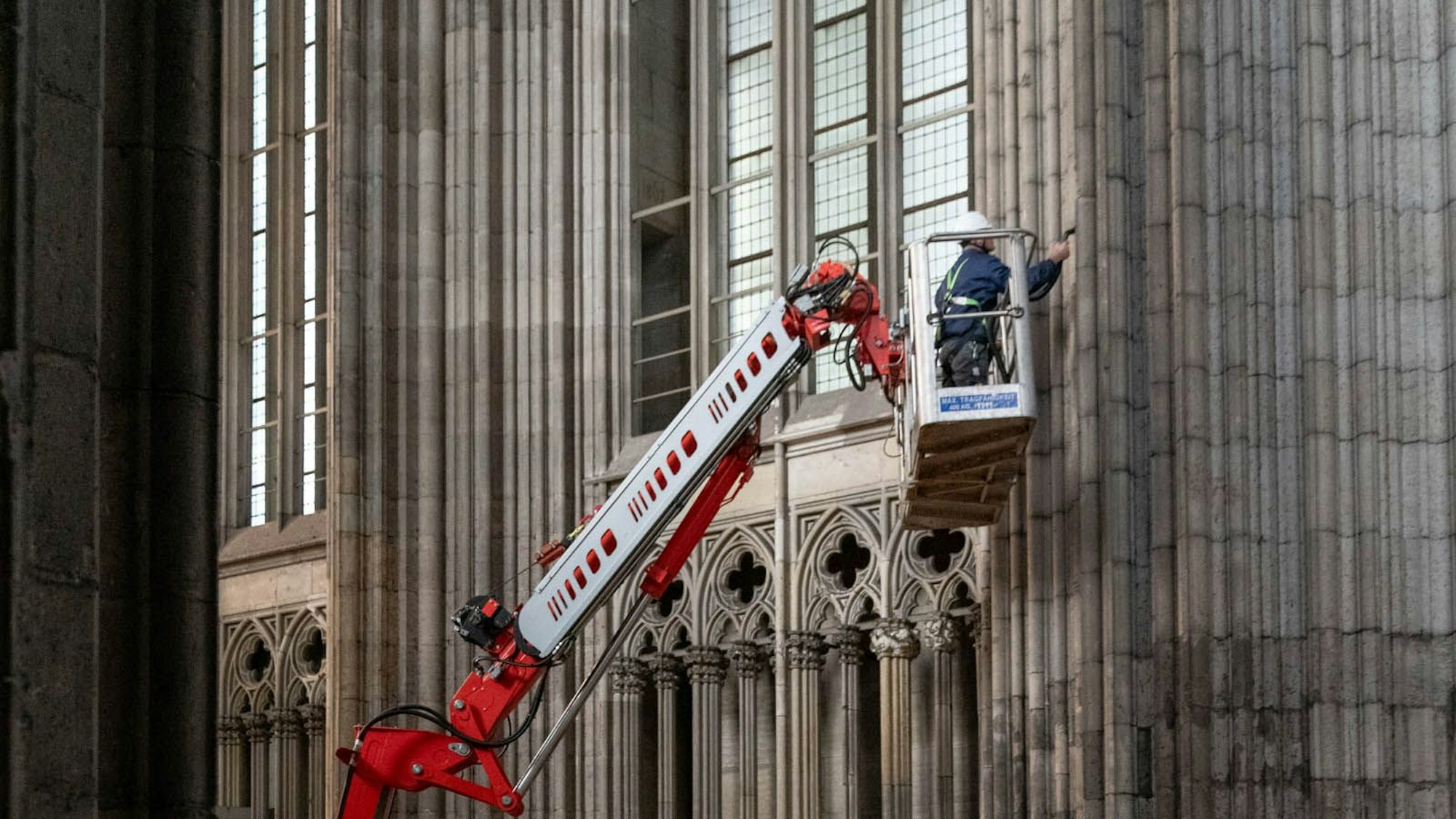 Manche fühlen sich im Dom dem Himmel ein Stückchen näher. Für andere wiederum liegen in der weltberühmten Kathedrale ganz weltliche Dinge in unerreichbarer Ferne. Beispielsweise wenn es um Reinigungsarbeiten an den Innenwänden der Westturmhalle geht. Die oberen Abschnitte haben sich bisher jedem Frühjahrsputz entzogen. „Bisherige Reinigungen der Wände konnten bis zu einer Höhe von 27 Metern durchgeführt werden“, berichtet eine Sprecherin des Doms. Auf den darüberliegenden 16,5 Metern konnte sich der Staub der Jahrzehnte widerstandslos niederlassen. Bisher. Denn nun wurde in der schon länger währenden Kooperationsgeschichte zwischen dem Dom und dem Reinigungsgerätehersteller Kärcher einen neuer „Höhepunkt“ erreicht.