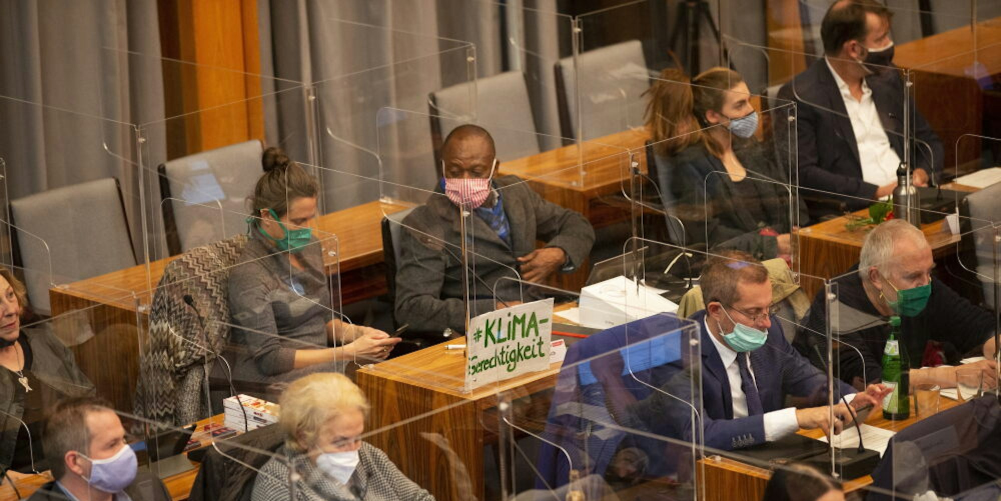 Dicht an dicht sitzen die Politiker im Stadtrat, getrennt durch Acrylglasscheiben.