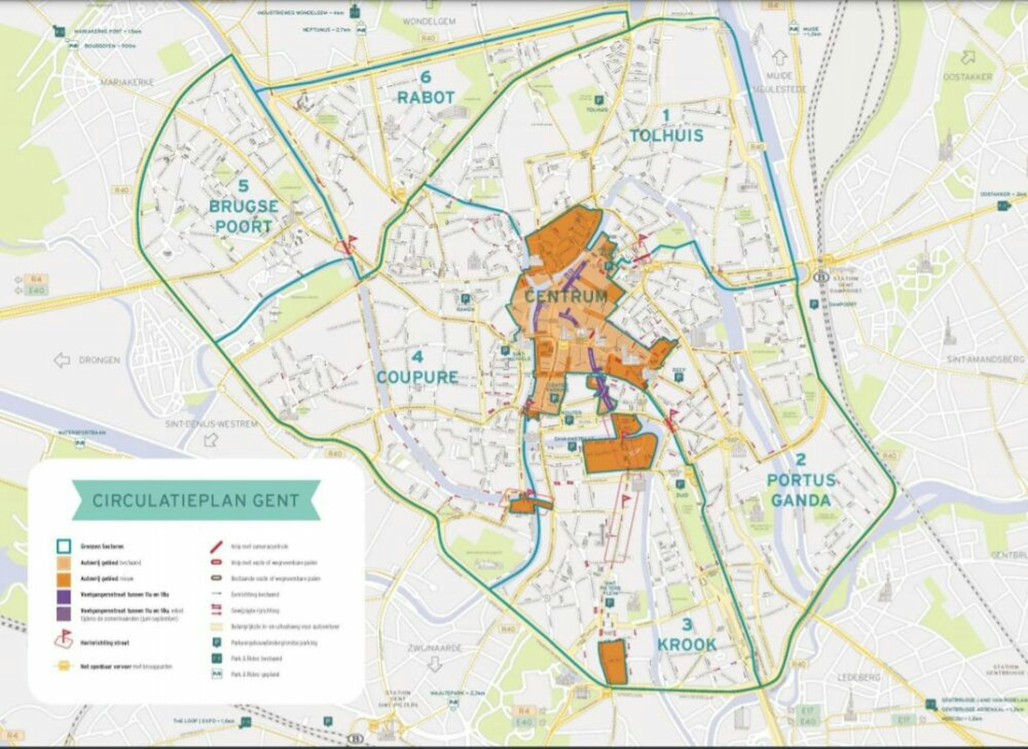 In Gent gibt es sechs Zonen, die für Autofahrer nur per Umweg untereinander erreichbar sind.