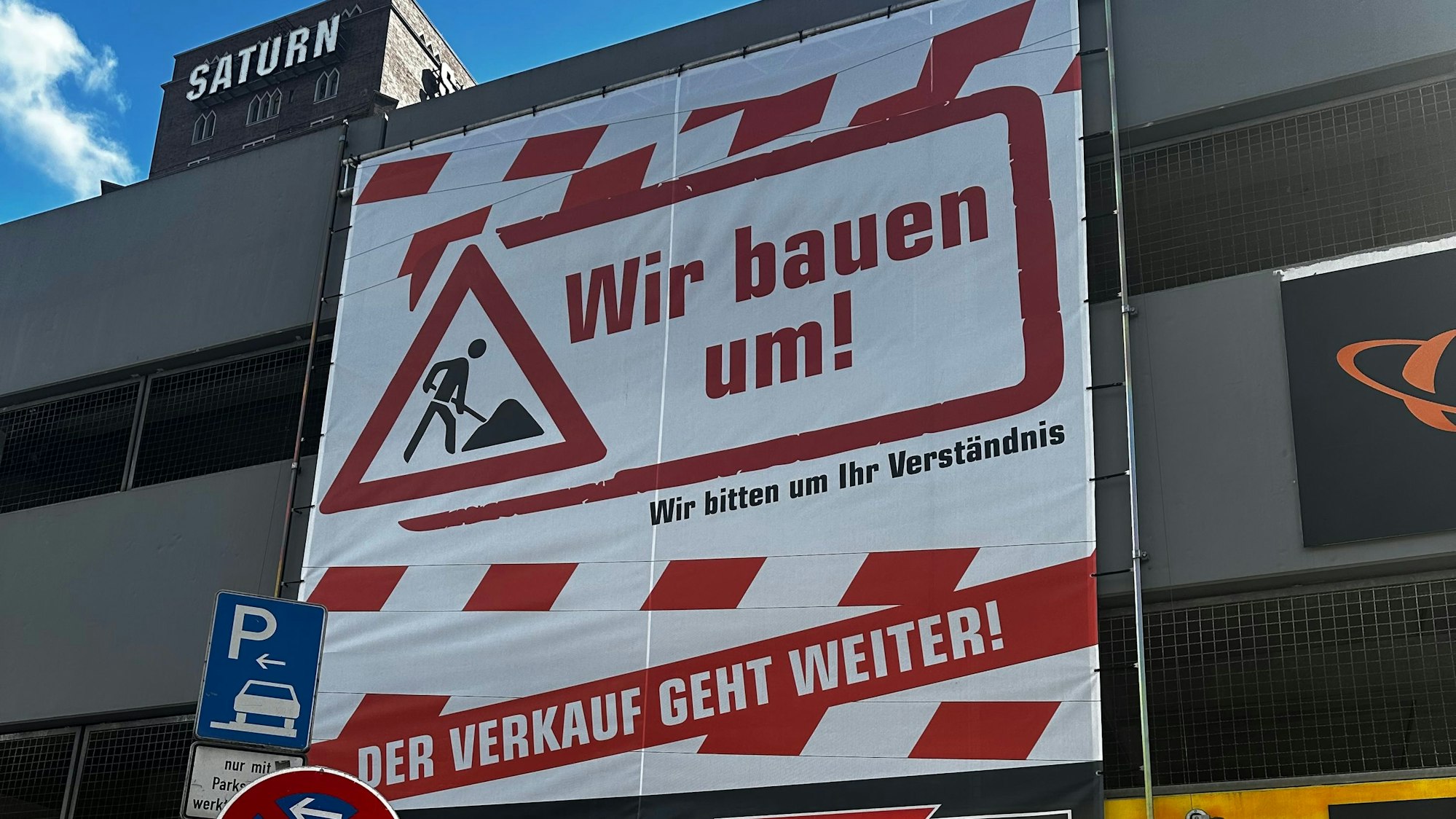 Nun ist es seit Montag geschlossen. Auf dem gegenüberliegenden Parkhaus heißt es auf einem riesigen Transparent: „Wir bauen um! Der Verkauf geht weiter!“ Nach Angaben der Pressestelle des Unternehmens bleibt der Markt jedoch für den „letzten Feinschliff“ bis Mittwoch geschlossen. Dann eröffnet er am Donnerstag neu als Mediamarkt.