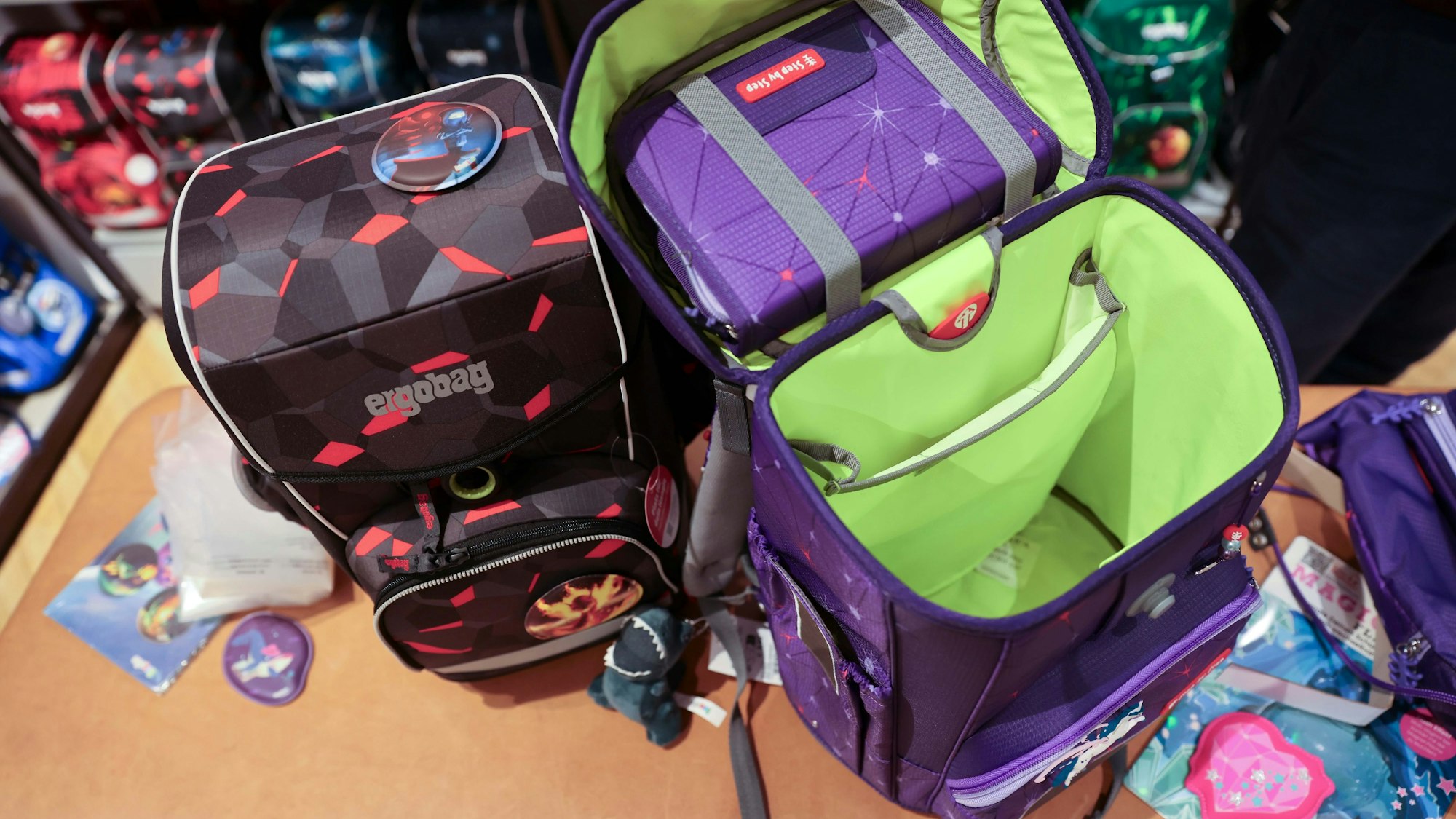 Die Kölner Marke „Ergobag“ sowie „Step by Step“ aus dem bayrischen Monheim stellen rund 80 Prozent der verkauften Ranzen bei Lederwaren Voegels dar - dabei gibt es aber auch noch eine Handvoll anderer Marken. Die modernen Ranzen wachsen durch ein verstellbares Rückenteil mit, damit sie die Grundschulzeit über passen, und sind hochwertig und nachhaltig produziert. „Es ist eine Investition für mehrere Jahre“, so Wenkal Bathija. „Das rechtfertigt meiner Meinung nach auch die Preise“, sagt Martin Voegels.