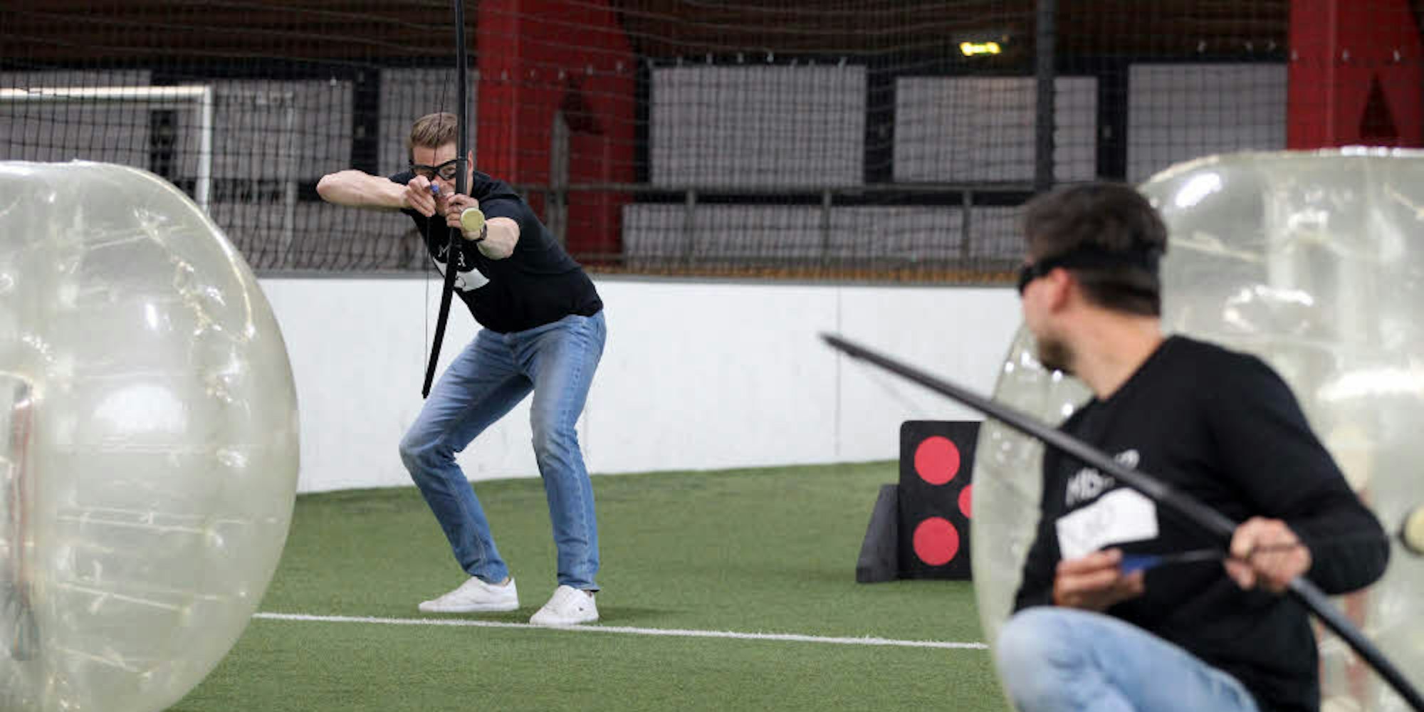 Um mitzuspielen, muss man nicht selbst ein Team aufbieten. Das stellt der Veranstalter zusammen. Immer wieder gibt es offene Events. Im „Bubble-Football“, der ersten Sportart im Angbot des Berliner Startups, werden bereits Turniere ausgetragen. Eine solche Ausweitung kann sich auch für das noch junge „Arrow Tag“ ergeben.