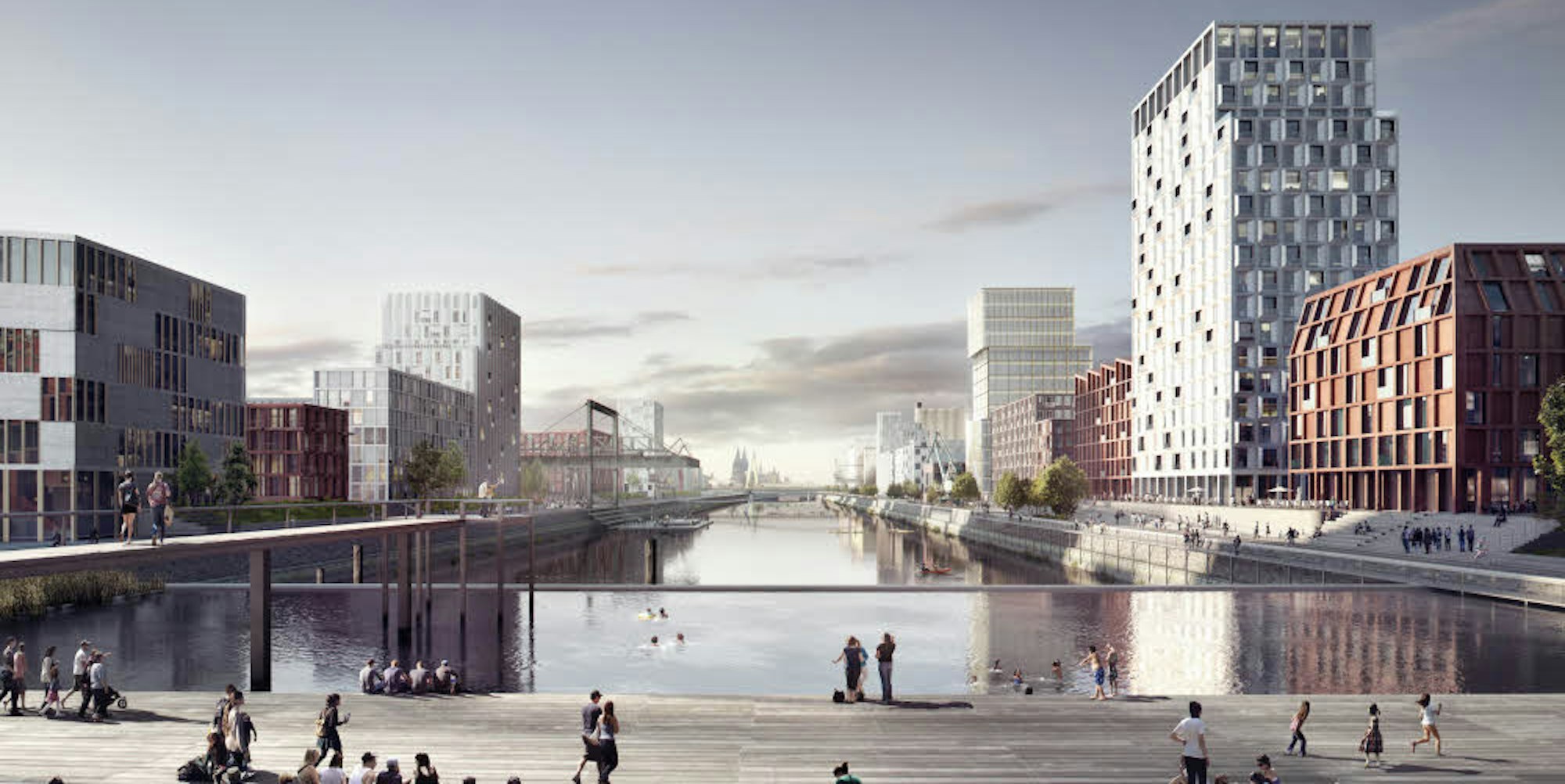 Schöne neue Welt: So soll der Deutzer Hafen mal aussehen, auch ein Pool ist möglich.