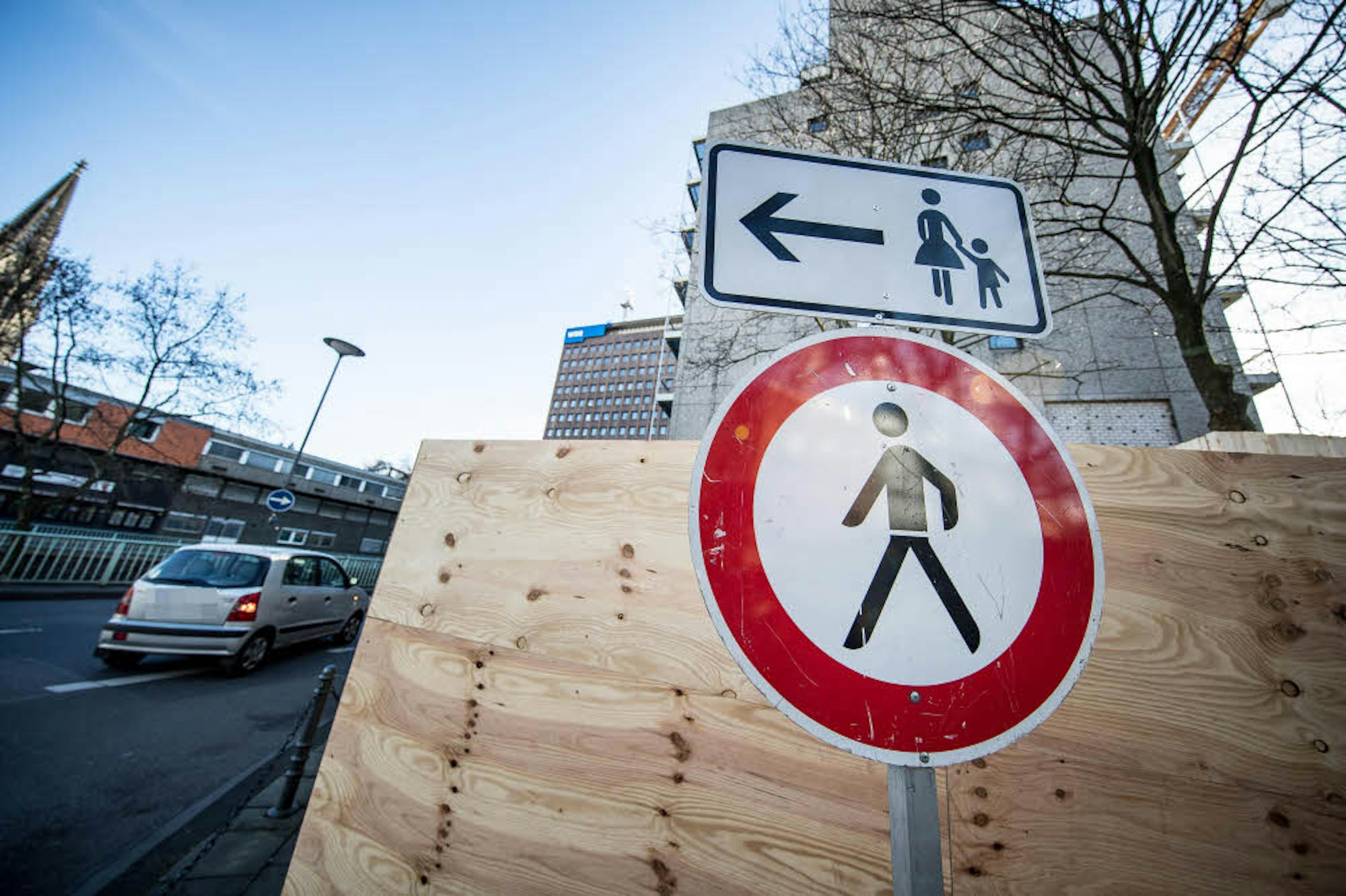 Köln – Dieser Weg wird kein leichter sein: Häufig queren derzeit Passanten die Nord-Süd-Fahrt auf Höhe der WDR-Arkaden. Es handelt sich dabei weder um einen Selbstversuch der Wissenschaftsredaktion noch um Stunts für ein Action-Format. Die Fußgänger laufen aufgrund der Sanierung des WDR-Filmhauses buchstäblich gegen die Wand. Einmal in der Sackgasse angekommen, entschließen sich viele zur Querung der Nord-Süd-Fahrt. Ein ausgesprochen gefährliches Unterfangen.