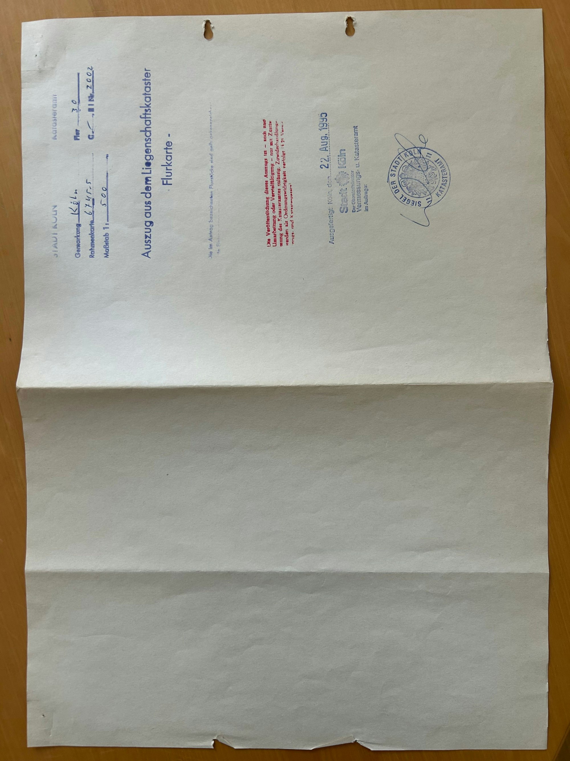 Auszug aus dem Grundbuch der Stadt Köln für den Dom