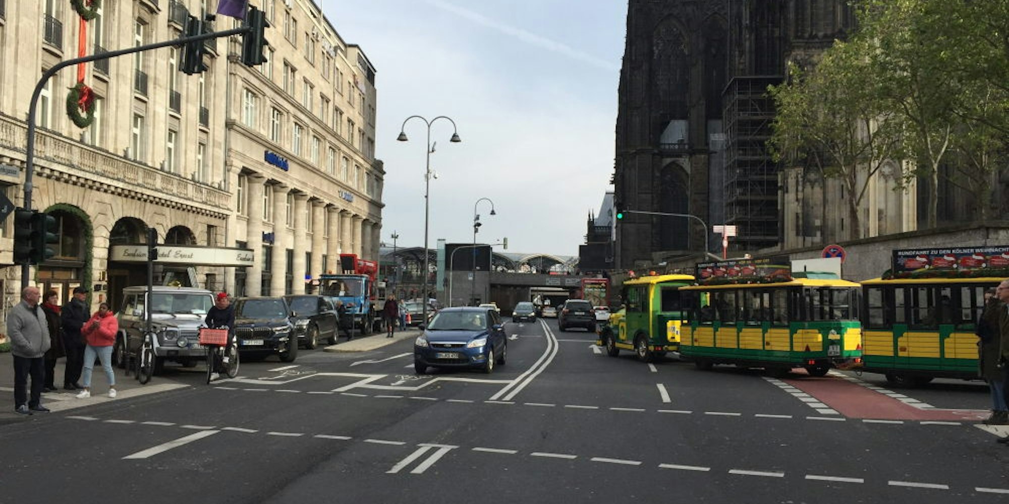Das sieht Pakulat anders: „Braucht es dort wirklich vier Fahrspuren? Brauchen wir den Rechtsabbieger in die Marzellenstraße?“ Das Problem an dieser Kreuzung sei weniger der mangelnde Platz für Autofahrer (da komme es eher in den Spitzenzeiten zu Rückstaus) als der fehlende Platz für die Fußgängerströme. Zumal künftig der Kardinal-Höffner-Platz zur Fußgängerzone werden soll. Auch Michael Frenzel von der SPD stellt den breiten Raum für die Autofahrer in Frage. Es gehe um den zentralen Zugang zur Kathedrale. Die Fläche sei zu wichtig, um sie nun umzugestalten und später wieder nachzubessern. „Das muss jetzt konsequent zu Ende gedacht werden.“