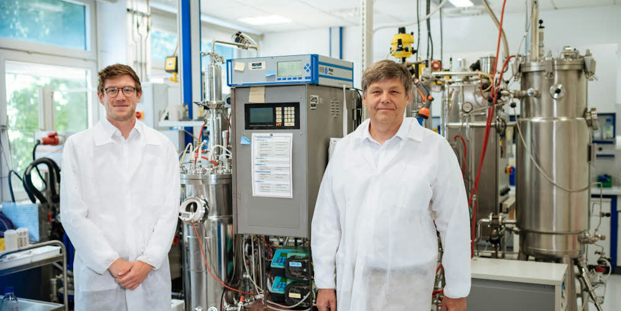 In den Fermentationsanlagen wird aus den Zutaten nach und nach das natürliche Himbeer-Aroma. Nicolai Assenmacher (l.) und Dr. Peter Welters planen bereits weitere Produkte.