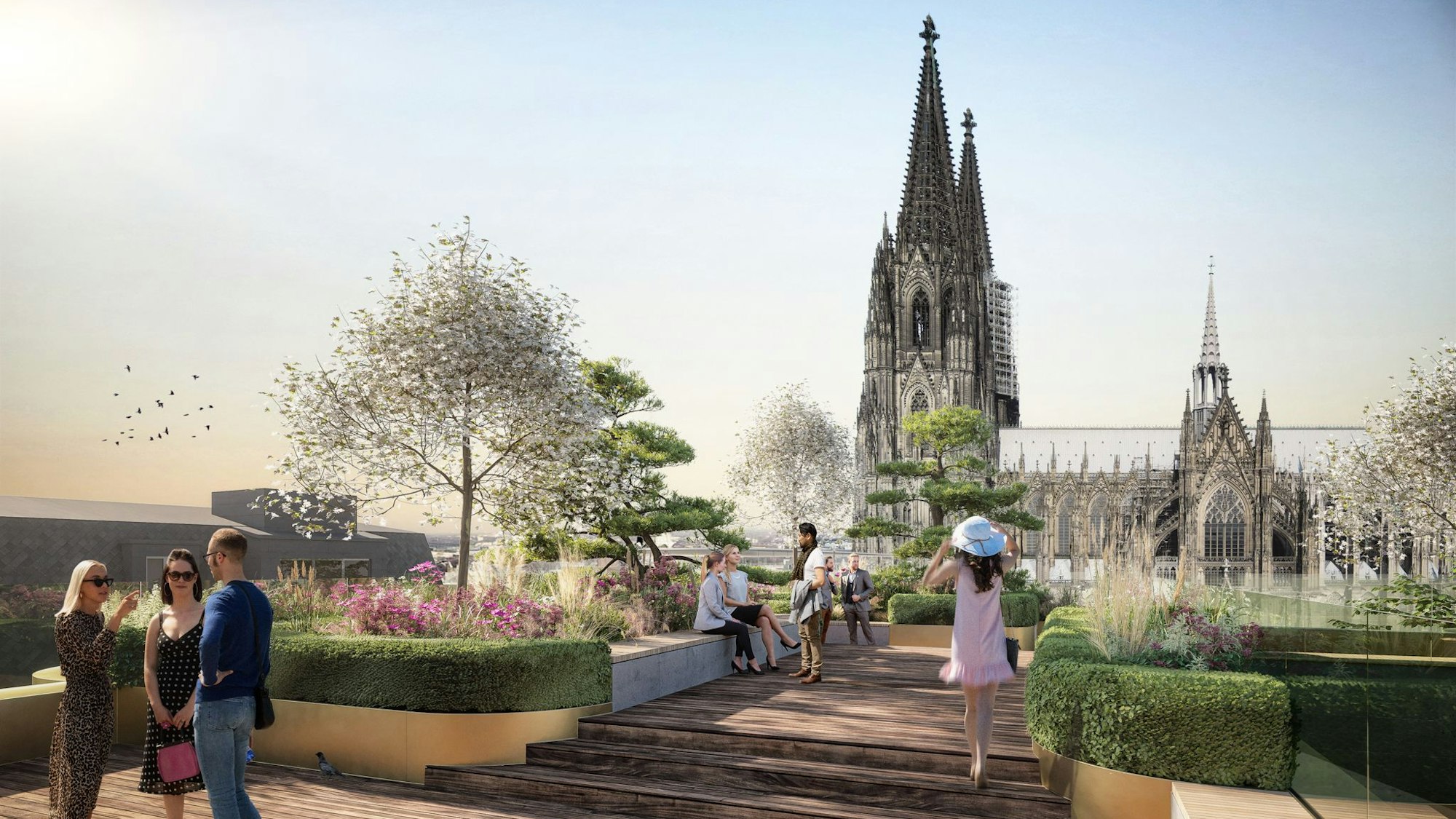 Eine begrünte Dachterrasse mit Domblick soll es im Goldschmied Carré ebenfalls geben.