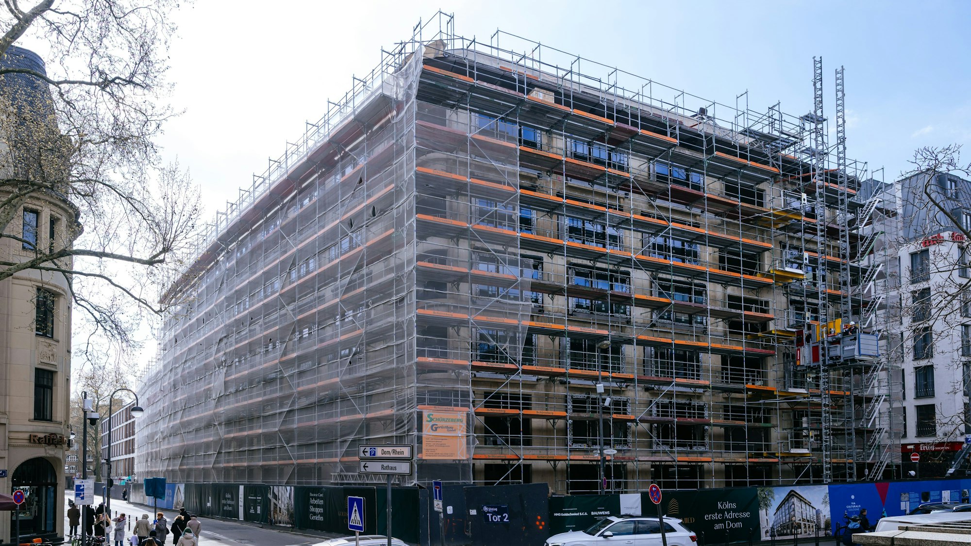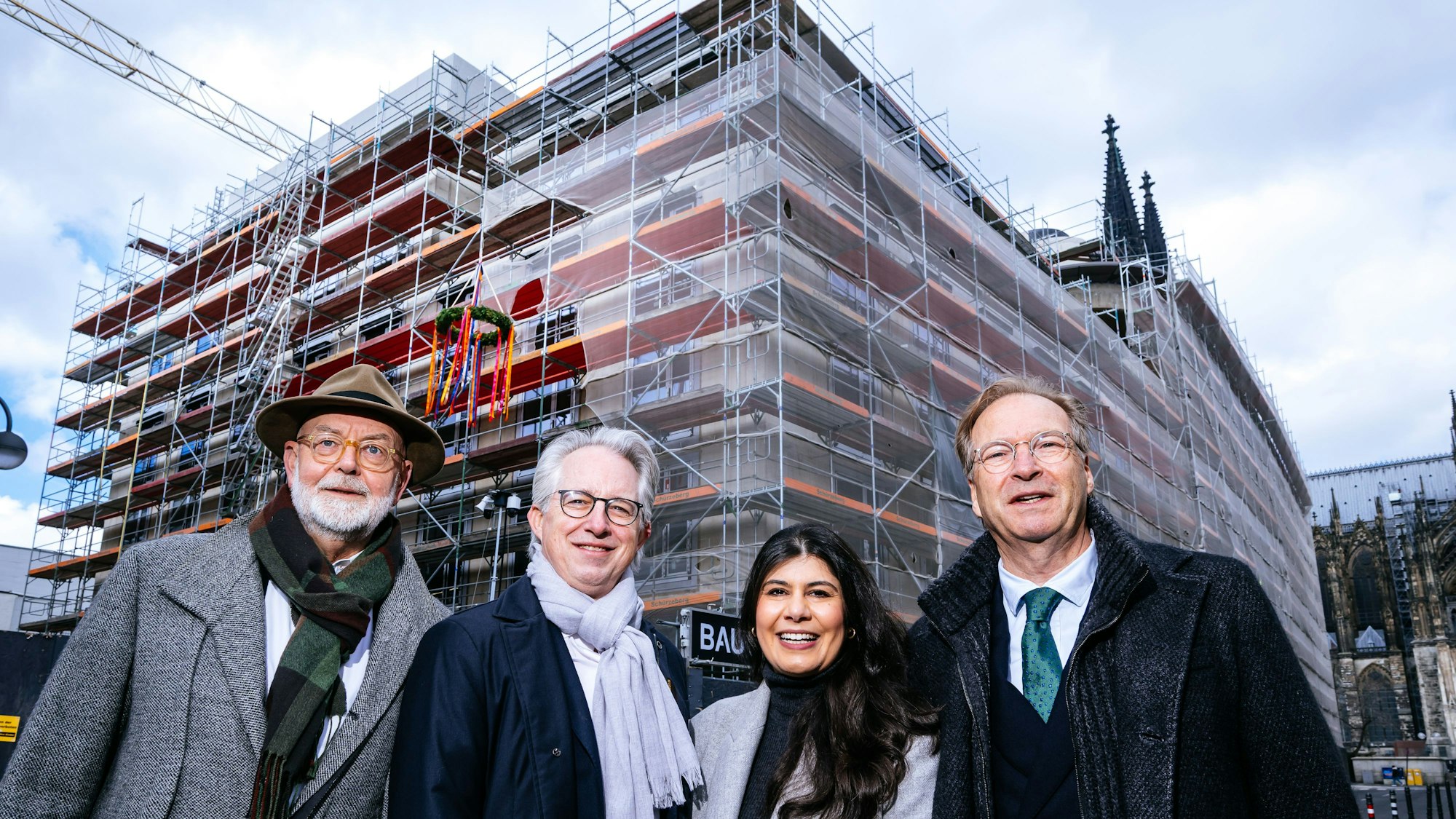 Das Goldschmied Carré ist eine der prominentesten Adressen in der Kölner Innenstadt: Es liegt zwischen Roncalliplatz und Rathaus und grenzt demnach direkt an die Domplatte. Schon jetzt kann man vom Dach des Rohbaus einen unverstellten Blick auf die Längsseite des Kölner Doms genießen - und auf weitere Baustellen. Zur einen Seite unter anderem die immer noch nicht abgeschlossene Sanierung des Dom-Hotels oder die Dauerbaustelle des Römisch-Germanischen Museums. Eine weitere Baustelle, zur anderen Seite hin, ist das Jüdische Museum, an dessen Hauptgebäude ebenfalls bereits seit fast acht Jahren gebaut wird.