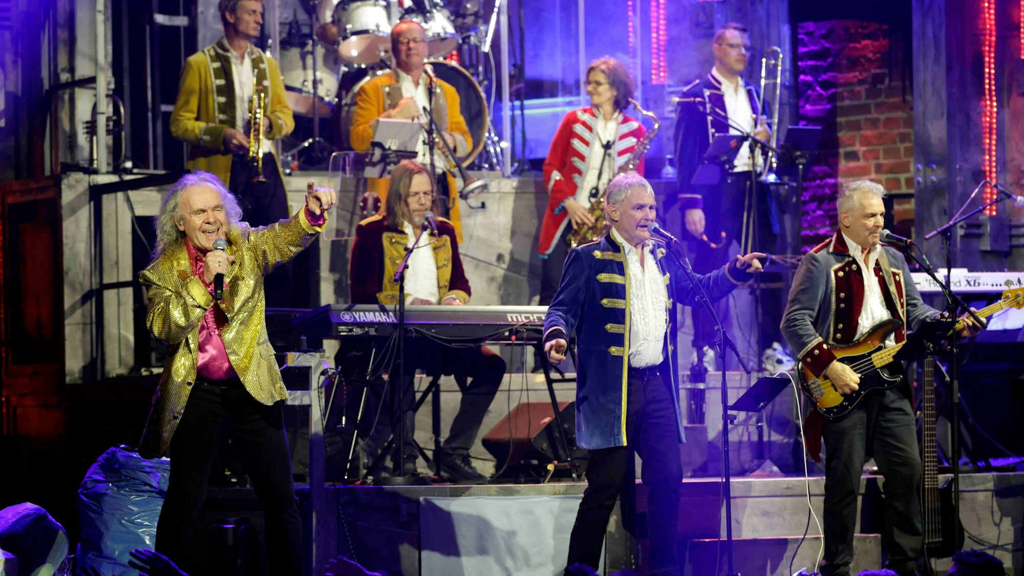 „Posaunenboys“: In knallroten Glitzerjacken zaubern Köbes-Underground aus dem L.S.E.-Hit „Saunaboy“ eine hinreißende sechsfache Hommage an das Instrument mit dem langen Zug.