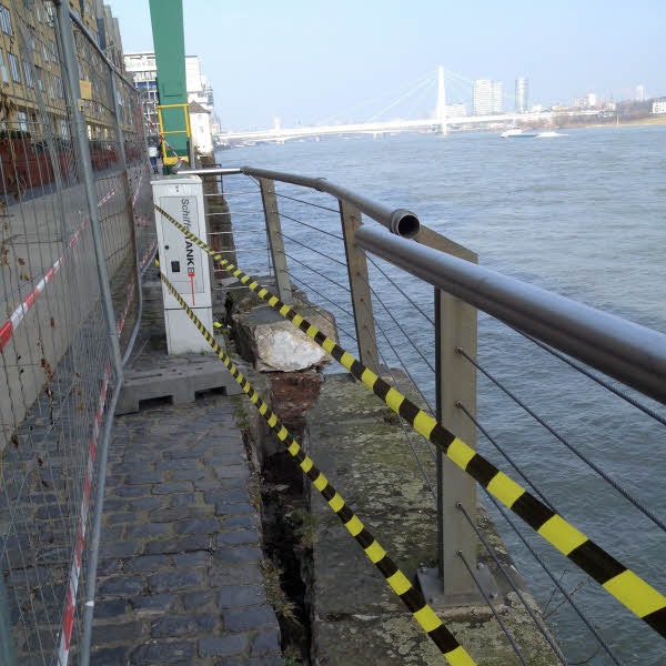 Anlass für das Hupkonzert: Wie die Rundschau bereits vorige Woche berichtete, hat die Häfen und Güterverkehr Köln AG (HGK) aus Sicherheitsgründen am 6. Februar ein Festmachverbot für die gesamte 1400 Meter lange Kaimauer zwischen dem Sportmuseum und der Autoabsetzanlage an der Südbrücke verhängt. Grund sind statische Probleme. Die Verankerungen der Poller und Stahlringe an der alten Kaimauer aus dem 19. Jahrhundert sind für heutige Schiffe, die viel größer und schwerer sind als früher, zu schwach dimensioniert. Zweimal hatten um die Jahreswende in Höhe des „Siebengebirges“ festgemachte Schiffe bei Hochwasser Teile der Kaimauer herausgerissen. Deshalb lässt die HGK derzeit alle Poller und Ringe entfernen.