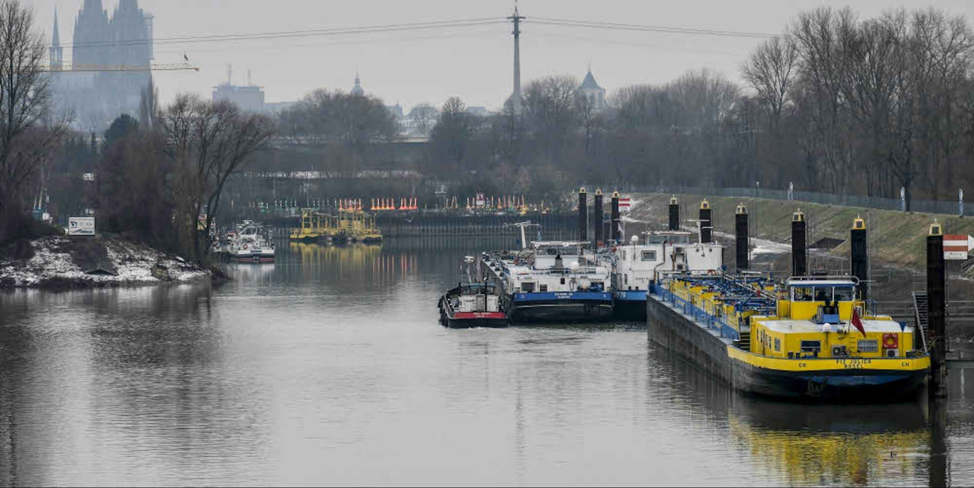 Liegeplätze für Binnenschiffe sind knapp in Köln. Im Mülheimer Hafen wurden vom Bund Anleger für Tankschiffe errichtet.
