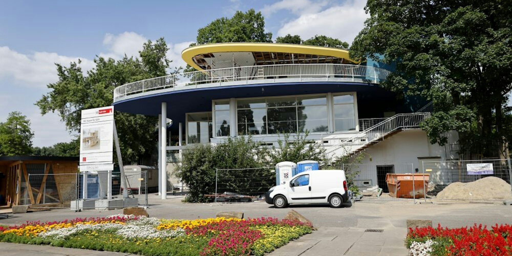 Die Sanierung des denkmalgeschützten Cafés im Rheinpark soll bis Jahresende abgeschlossen sein und die Gastronomie auch zumindest teilweise öffnen. Das haben die Stadt als Besitzer und Roberto Campione als Pächter mitgeteilt.
