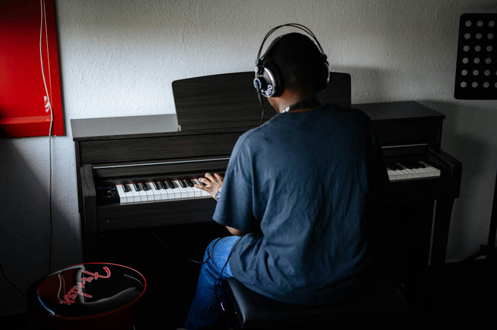 Sogar ein Musikzimmer mit einem Konzertflügel ist vorhanden und kann kostenfrei genutzt werden. „Das Angebot ist echt der Wahnsinn“, sagt Stefanie Weigert, die gerade ihrem siebenjährigen Sohn den ersten Nutzerausweis besorgt hat.