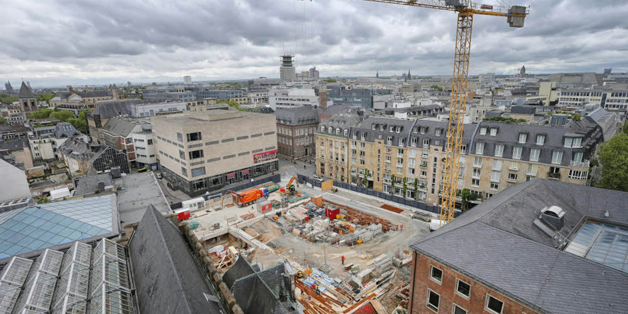 Im Bau: Die „Miqua“-Baustelle vom Turm des Rathauses fotografiert.