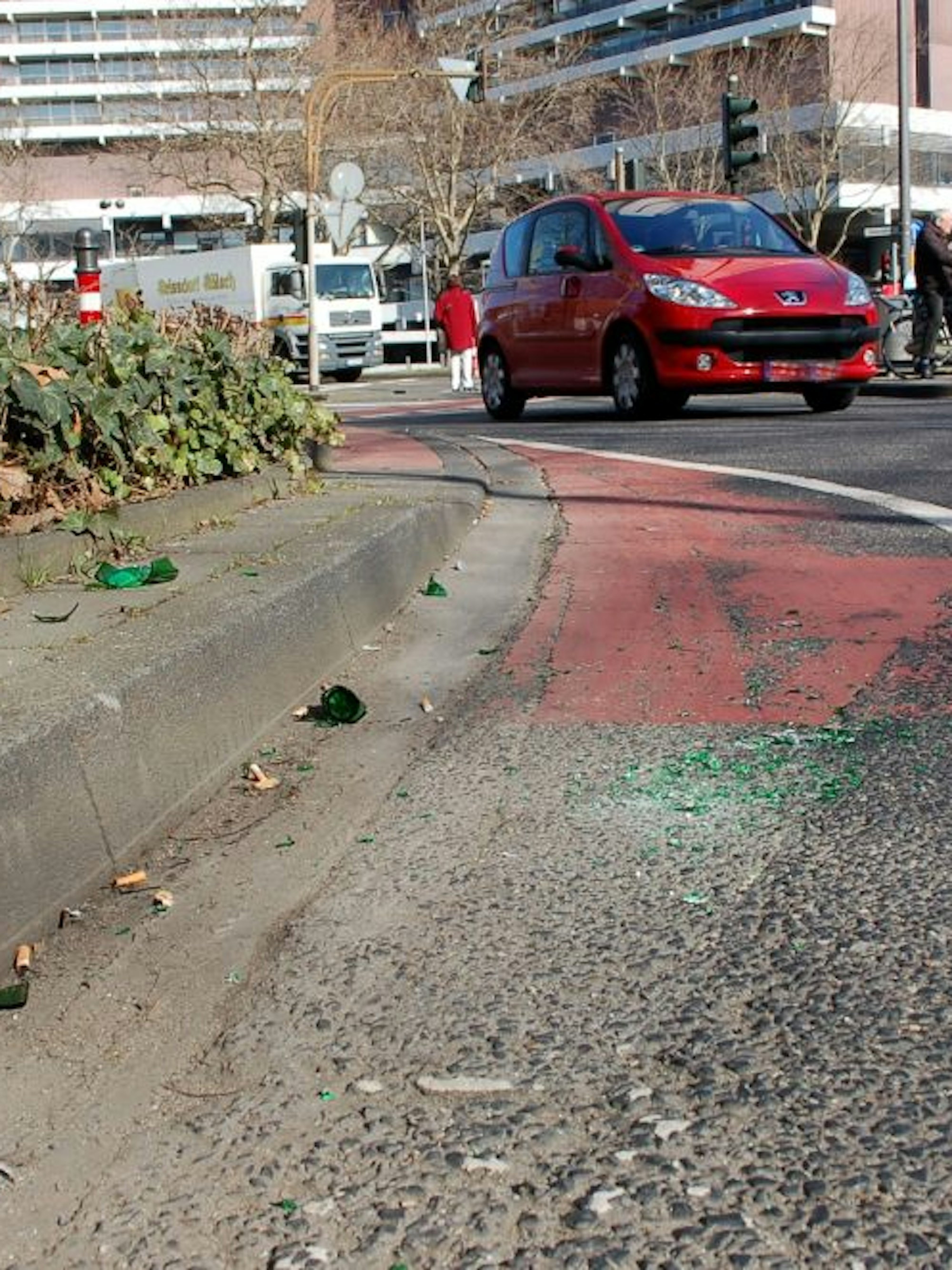 Die Versuche, auf der Luxemburger Straße Radverkehr zu etablieren, gerieten etwas halbherzig.