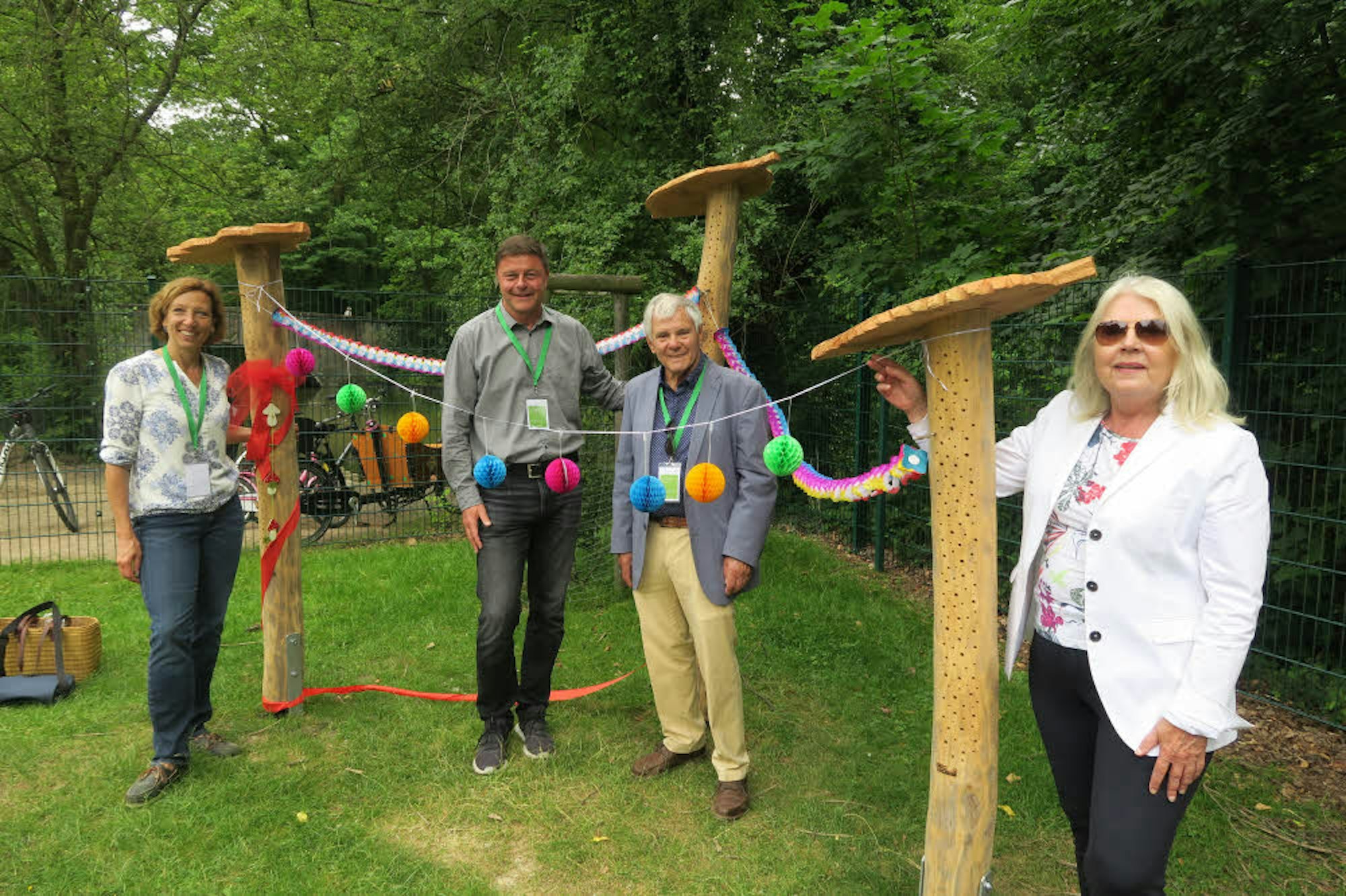 Dennoch ist man immer wieder mit neuen Situationen konfrontiert. Aufgrund der Diskussionen um das Insektensterben kümmert man sich nun auch um diese oft übersehen Klasse von Tieren. Zum 111-jährigen Bestehen stellte der Förderverein drei Insektenhotels in Form von schlanken Baumstämmen auf: „Drei Einsen sozusagen“, erklärte Blömer-Frerker die Symbolik.