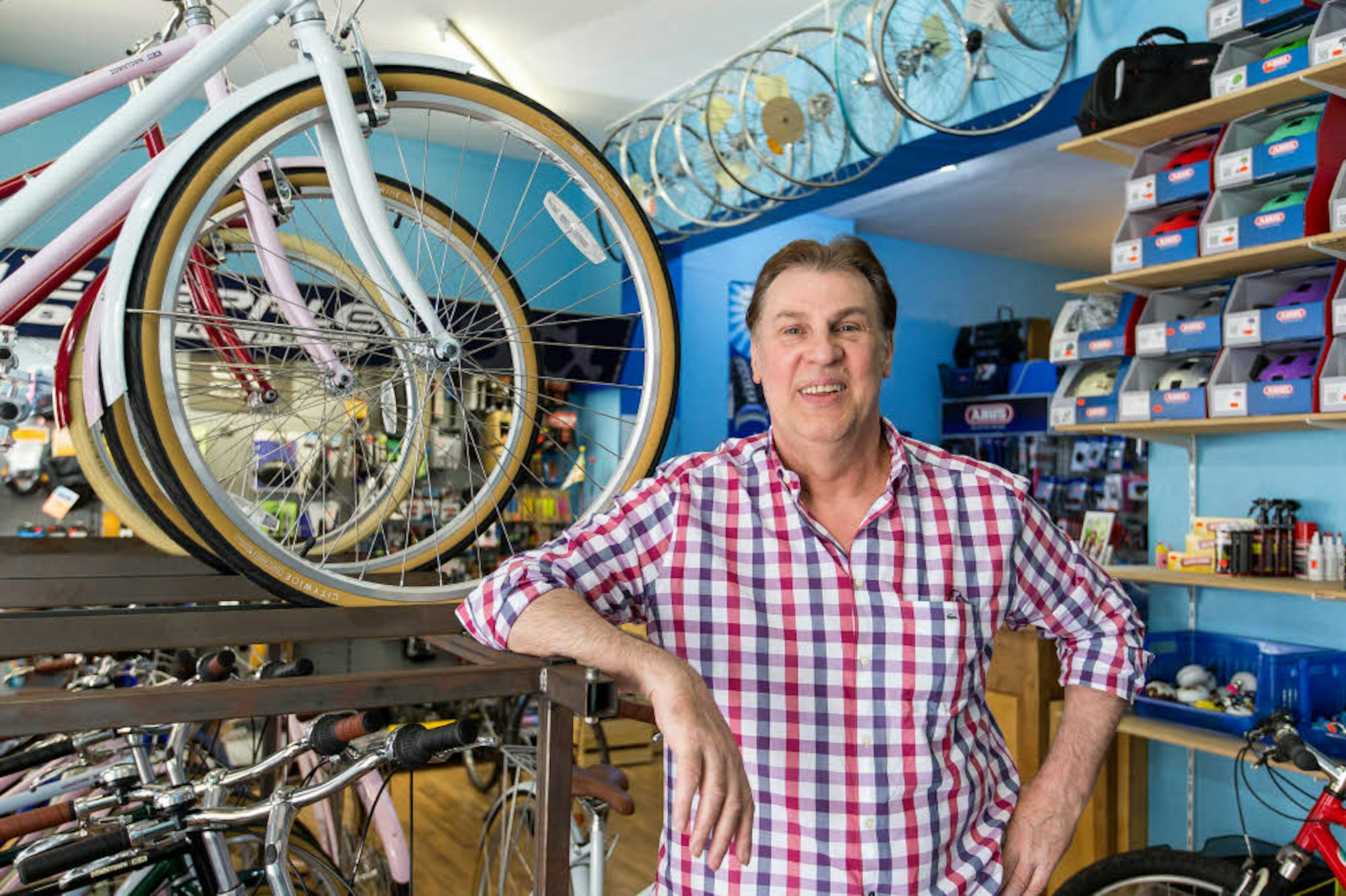 Rad-Experte Rolf Moll (l.) fühlt sich im Veedel sehr wohl.