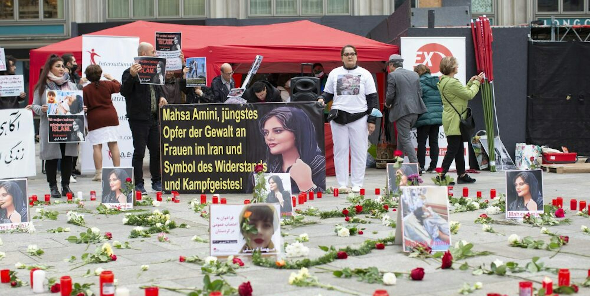 Trauerfeier auf dem Roncalliplatz: In Gedenken an die verstorbene Iranerin Masha Amini versammelten sich Kölner vor dem Dom.