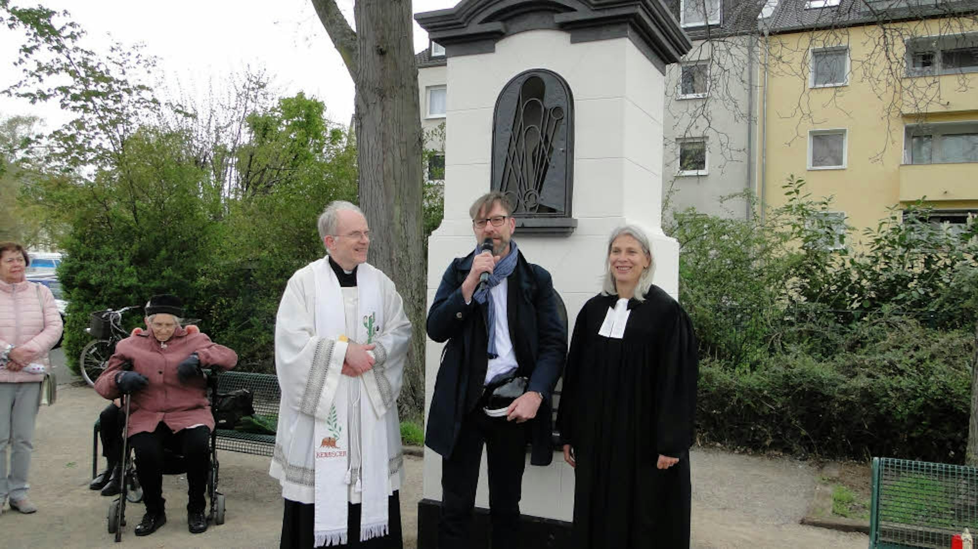 Leiteten gemeinsam eine ökumenische Einsegnungsfeier: Pfarrer Michael Kuhlmann und Pfarrerin Reinhild Widdig – in der Mitte Andreas Langer, Vorsitzender des Bürgervereins.