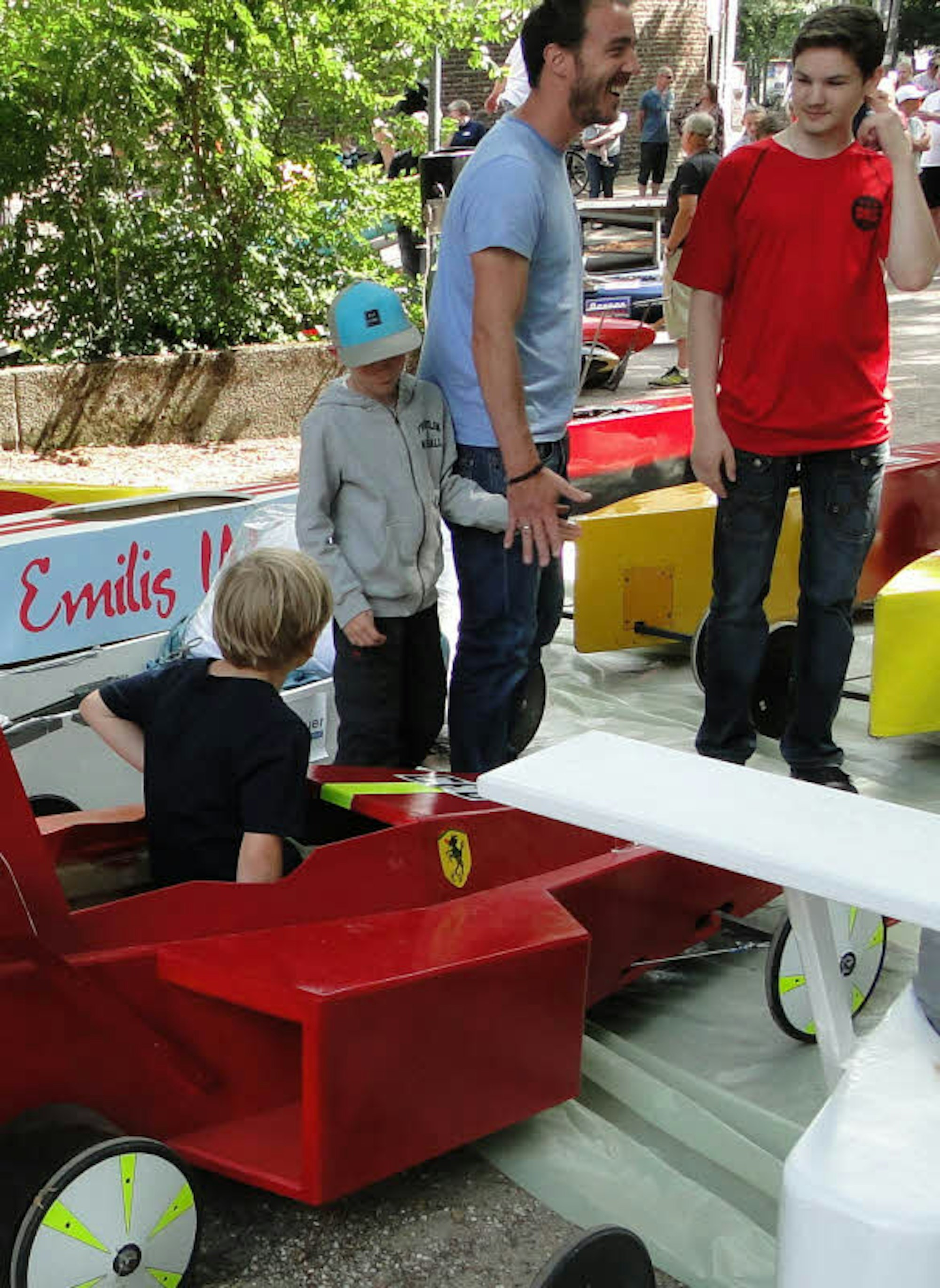 Das hieß jedoch nicht, dass der Spaß zu kurz kam – dafür war die offene Klasse da, in der in der Gestaltung der Seifenkisten der Fantasie keine Grenzen gesetzt waren. Neben dem großzügigen Einsatz von Spoilern fanden sich hier auch miniaturisierte Nachbildungen von VW Bussen oder Formel-1-Boliden, die die Herzen von Motorsportfans höher schlagen ließen.