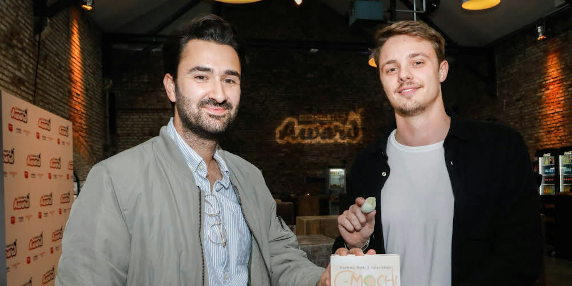 Aus der Packung nehmen und reinbeißen: Mark Mühürcuoglu (l.) und Paul Richrath erklären ihre „O-Mochi“.