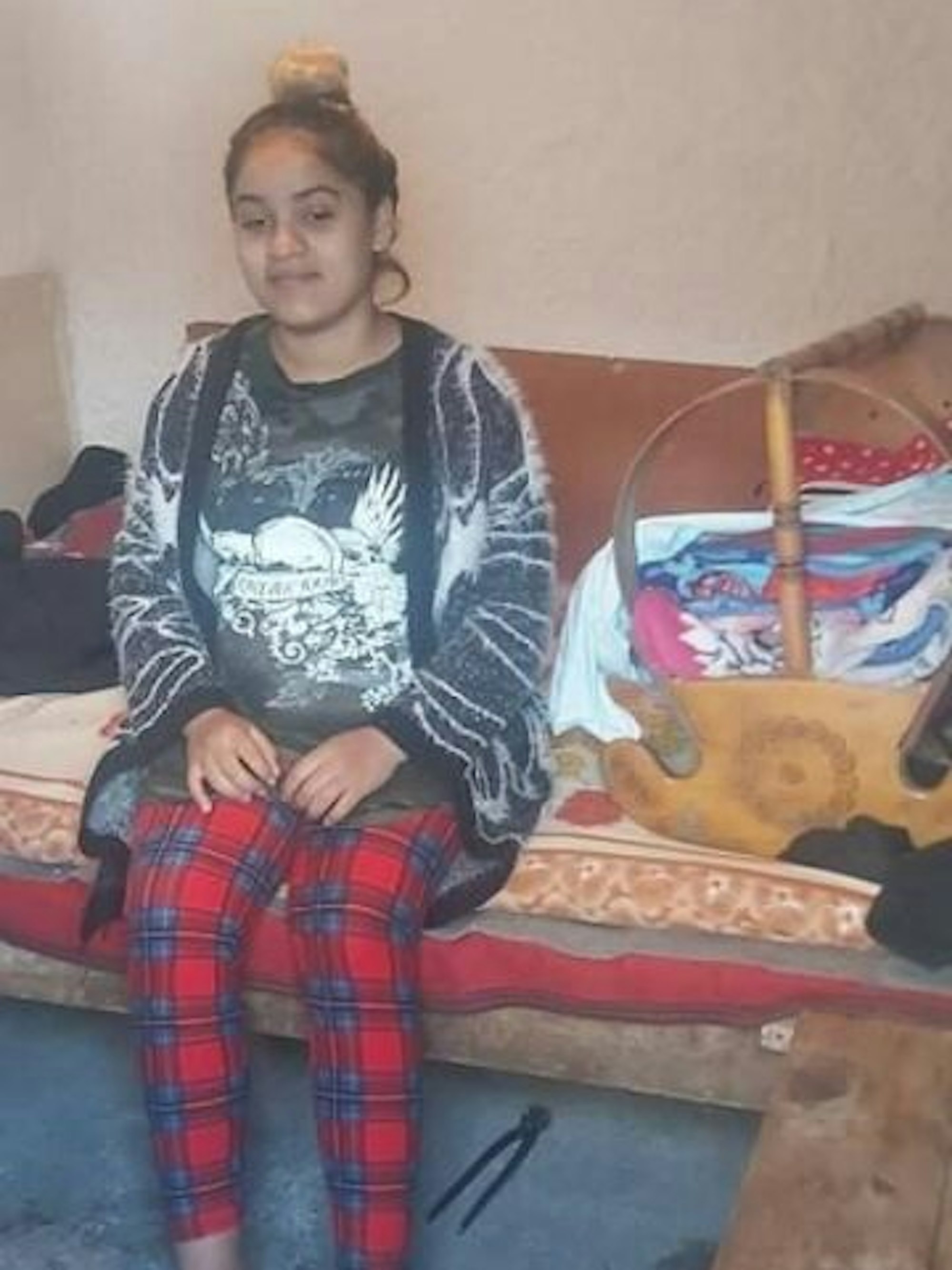 Die 17-Jährige Xhilliana sitzt neben der Wiege für ihr Baby.