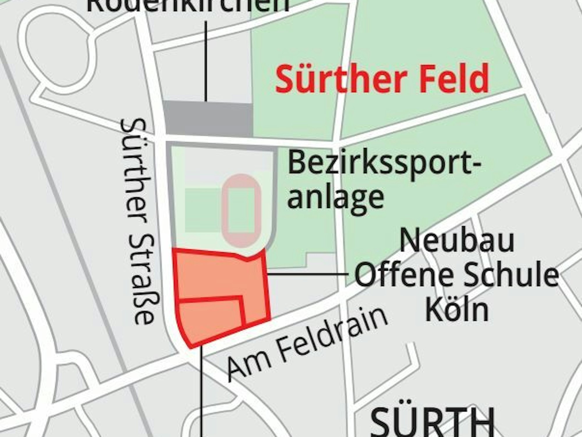 Ein großzügiger Schulcampus entstand auf der „grünen Wiese“ in Rodenkirchen, Sürther Straße. Unterhalb des Neubaus der Offenen Schule Köln befindet sich die städtische Ernst-Moritz-Arndt-Grundschule;oberhalb liegen bereits vorhandene Sportanlagen und die bestehende Gesamtschule Rodenkirchen. Die OSK zieht vom Interim Alte Wachsfabrik an die Sürther Straße; das frei werdende Gebäude will die Naturfreundeschule nutzen. (MW)