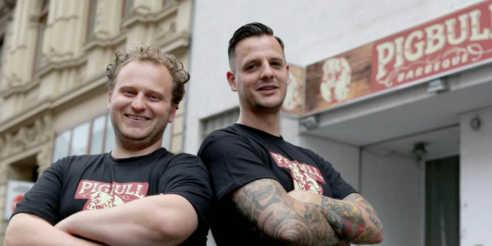 „Der Asi und der Schnösel“: Sebastian Franke (r.) und Maximilian Lorenz eröffnen ihren Barbecue-Laden „Pigbull“.